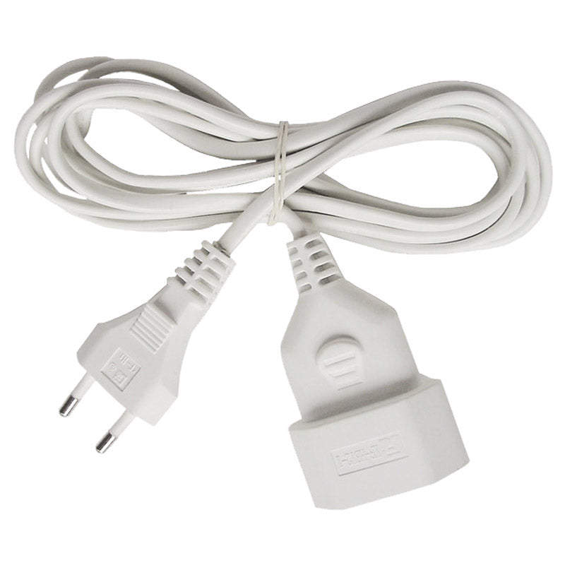Kunststoff-Verlängerungskabel, mit 5 m Kabellänge, flacher Euro-Stecker und Kupplung, Stecksystem DE (Stecker-Typ C), für den Innenbereich