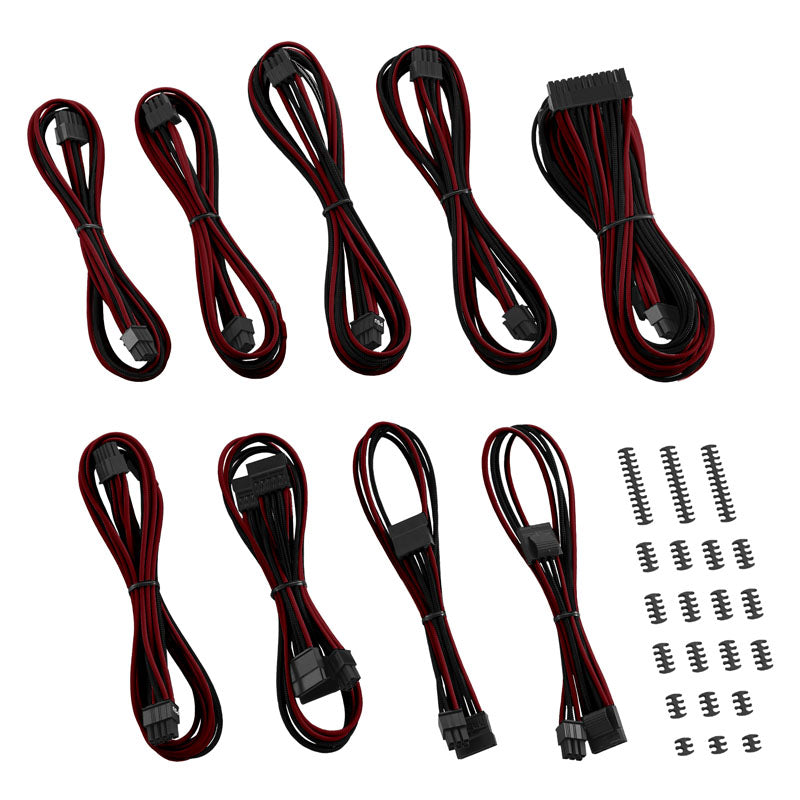 9-teiliges Kabelset von CableMod, inklusive Kabelkämmen, für ausgewählte ASUS- & Seasonic- & Phanteks-Netzteile, sehr hochwertige Einzel-Ader-Sleeves in Schwarz und Blutrot, blickdichtes Textil