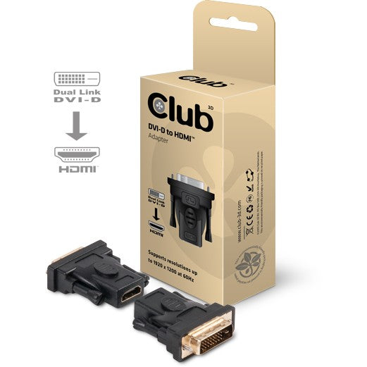 CLUB3D DVI-D to HDMI™ Passive Adapter. Anschluss 1: DVI. Anschluss 2: HDMI. Produktfarbe: Schwarz