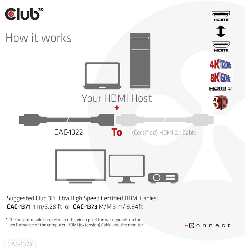 Club3D HDMI-Kabel 2.1 UHD-Verlängerungskabel 1 Meter St/Bu retail