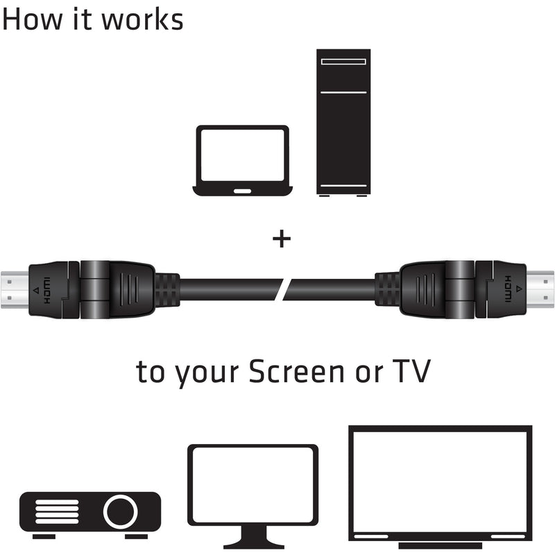 CLUB3D HDMI 2.0 4K60Hz UHD Kabel 360 Grad drehbar 2meter. Kabellänge: 2 m. Anschluss 1: HDMI Typ A (Standard). Steckverbinder 1 Geschlecht: Männlich. Anschluss 2: HDMI Typ A (Standard). Steckverbinder 2 Geschlecht: Männlich. Beschichtung Steckerkontakte: Kupfer. HDMI-Version: 2.0. 3D. Maximale Auflösung: 4096 x 2160 Pixel. Datenübertragungsrate: 18 Gbit/s. Audio Return Channel (ARC). Produktfarbe: Schwarz