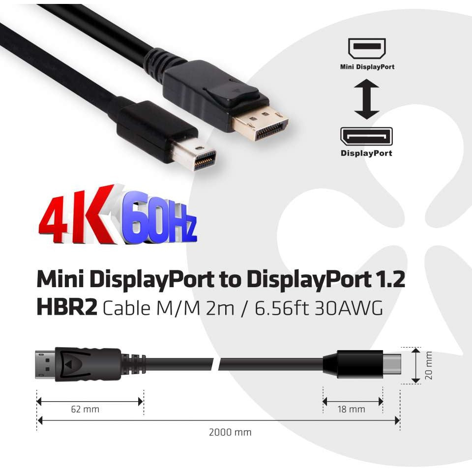 Club3D Kabel MiniDP 1.2 <-> DP 1.2 2m 4K60Hz St/St Polybeutel