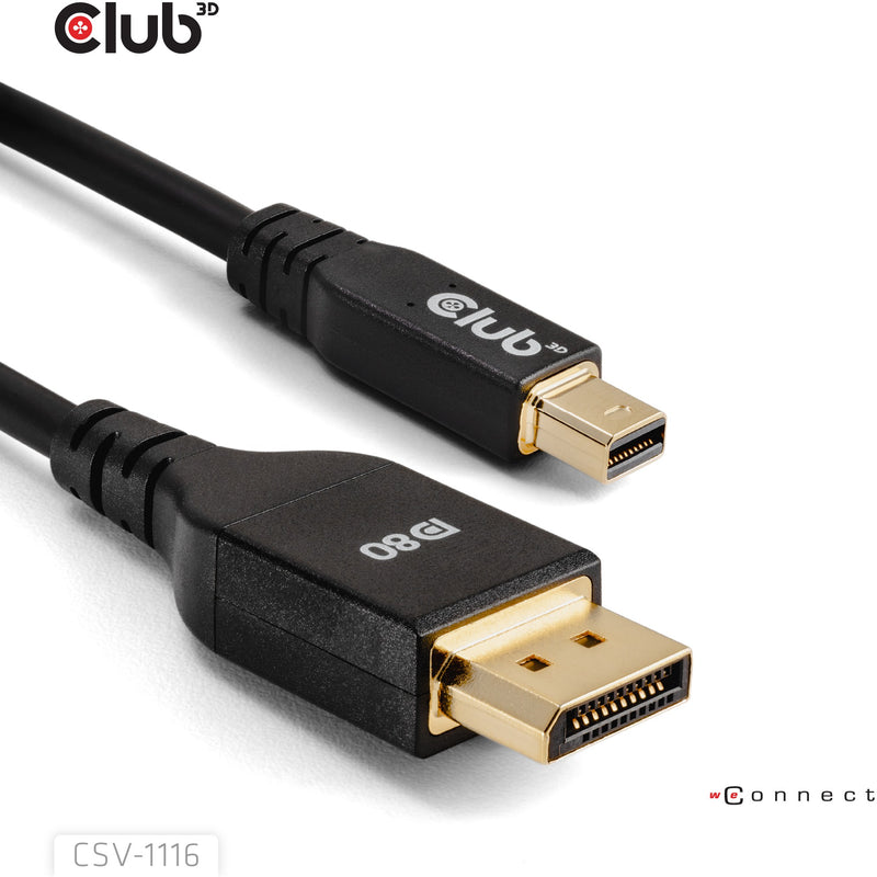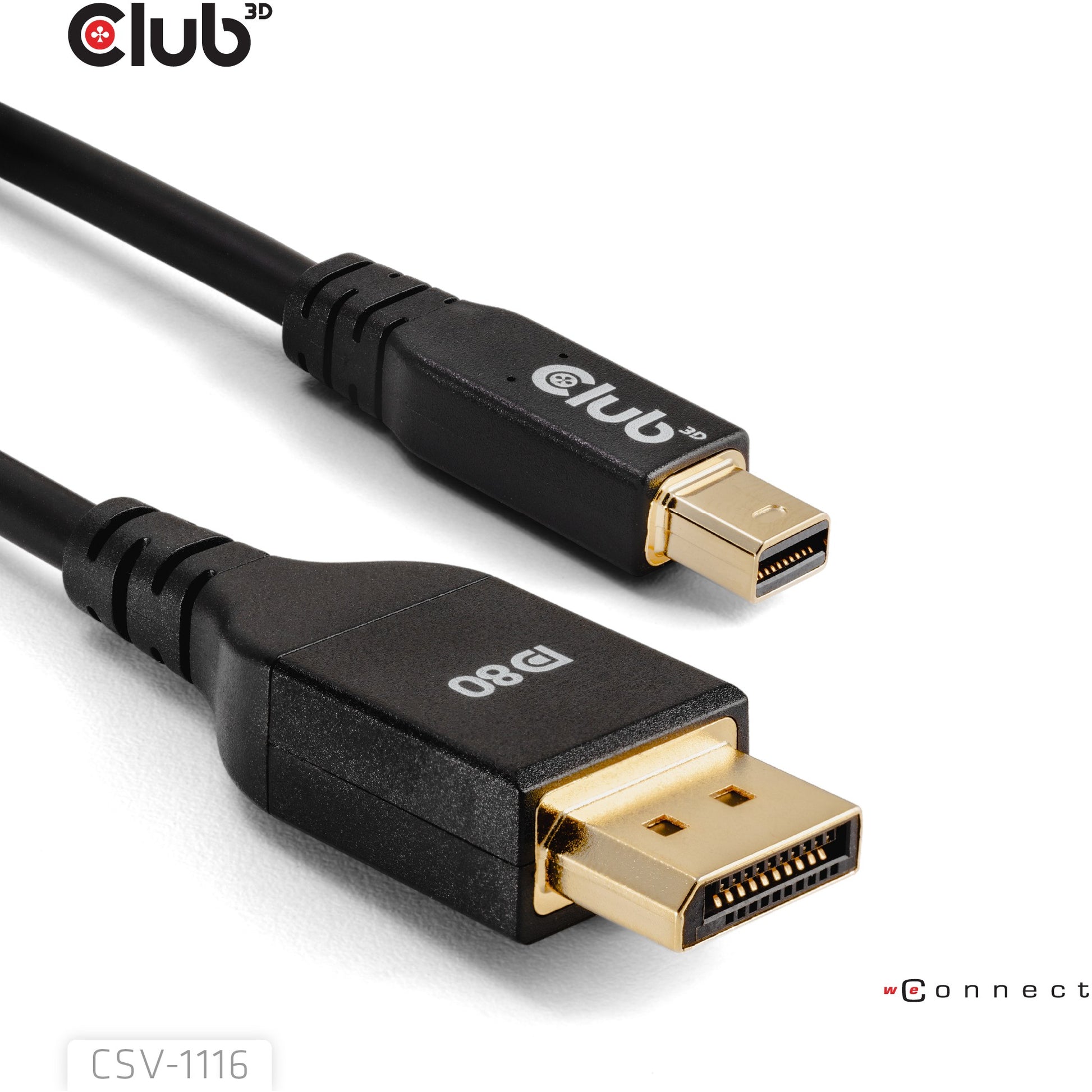 CLUB3D Mini DisplayPort™ to DisplayPort™ Bi-Directional VESA DP80 Certified Cable M/M 1m/3.28ft