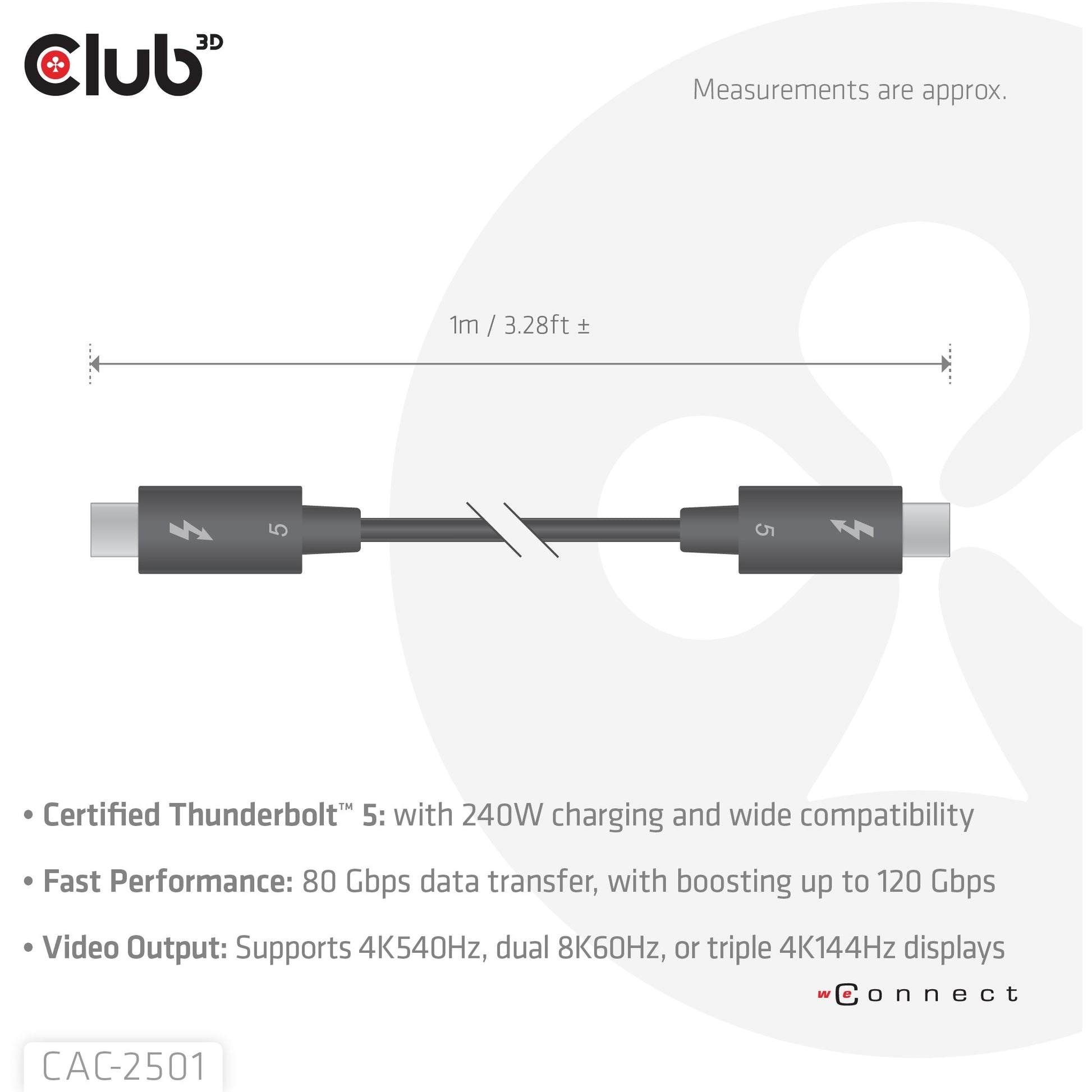 Club3D Kabel Thunderbolt5 zertifi. 8K240Hz/ 80/120Gbps 1m