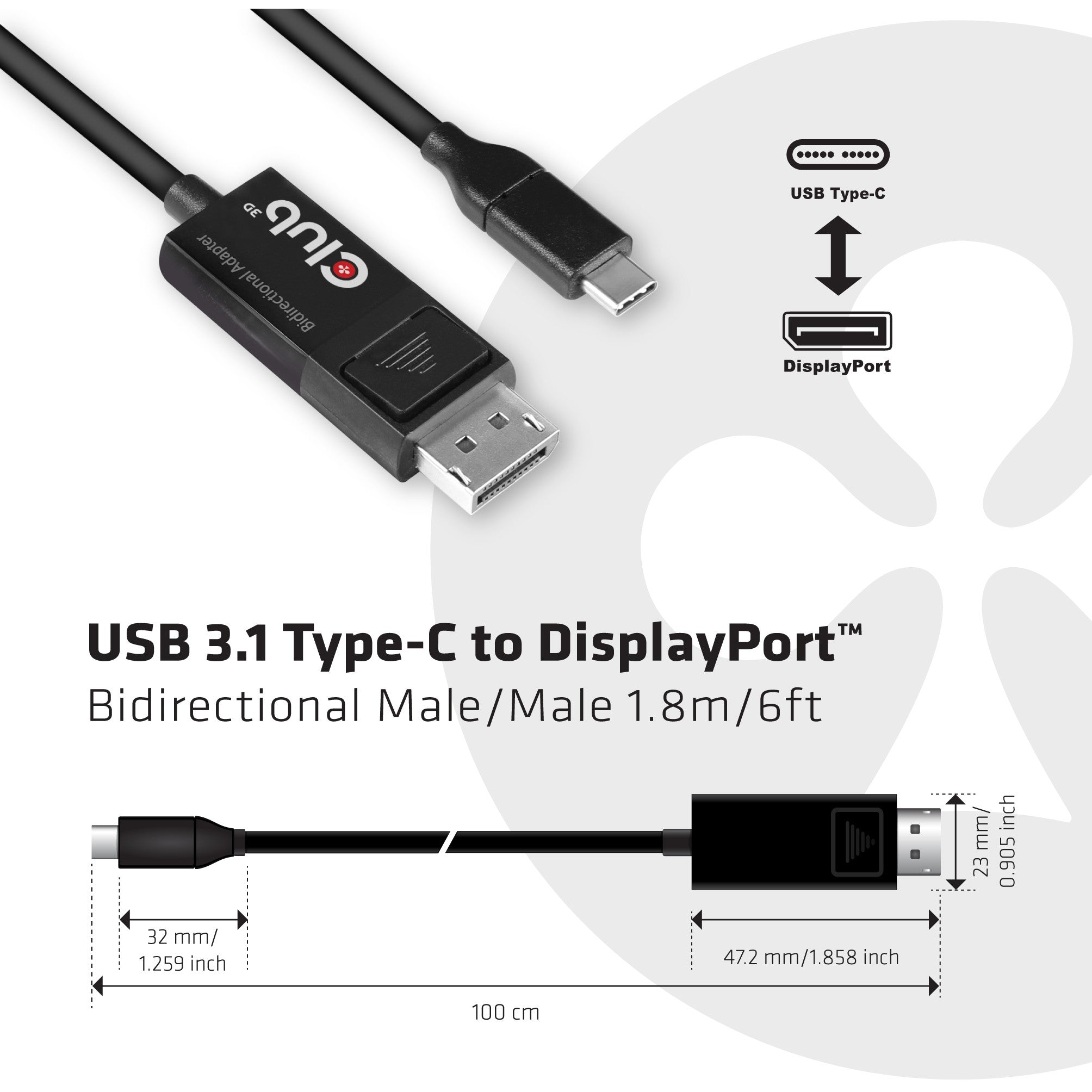 Club3D Kabel USB 3.1 Typ C > DP 1.4 8K60Hz UHD 1.8m St/St