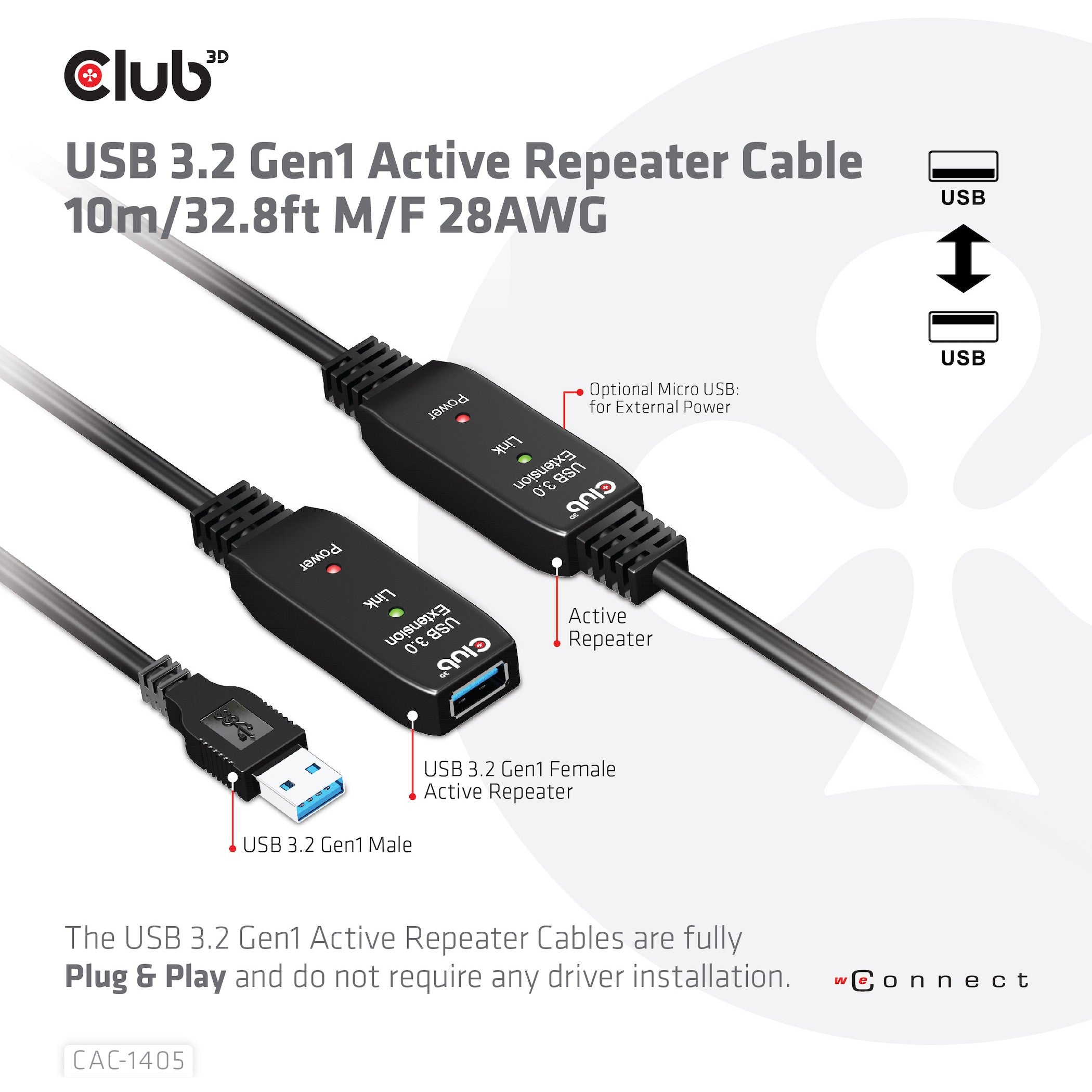 Club3D USB 3.2 A Verlängerungskabel 10m aktiv 5 Gbps St/Bu