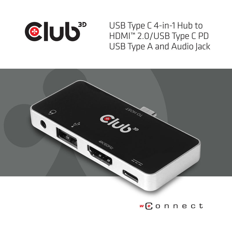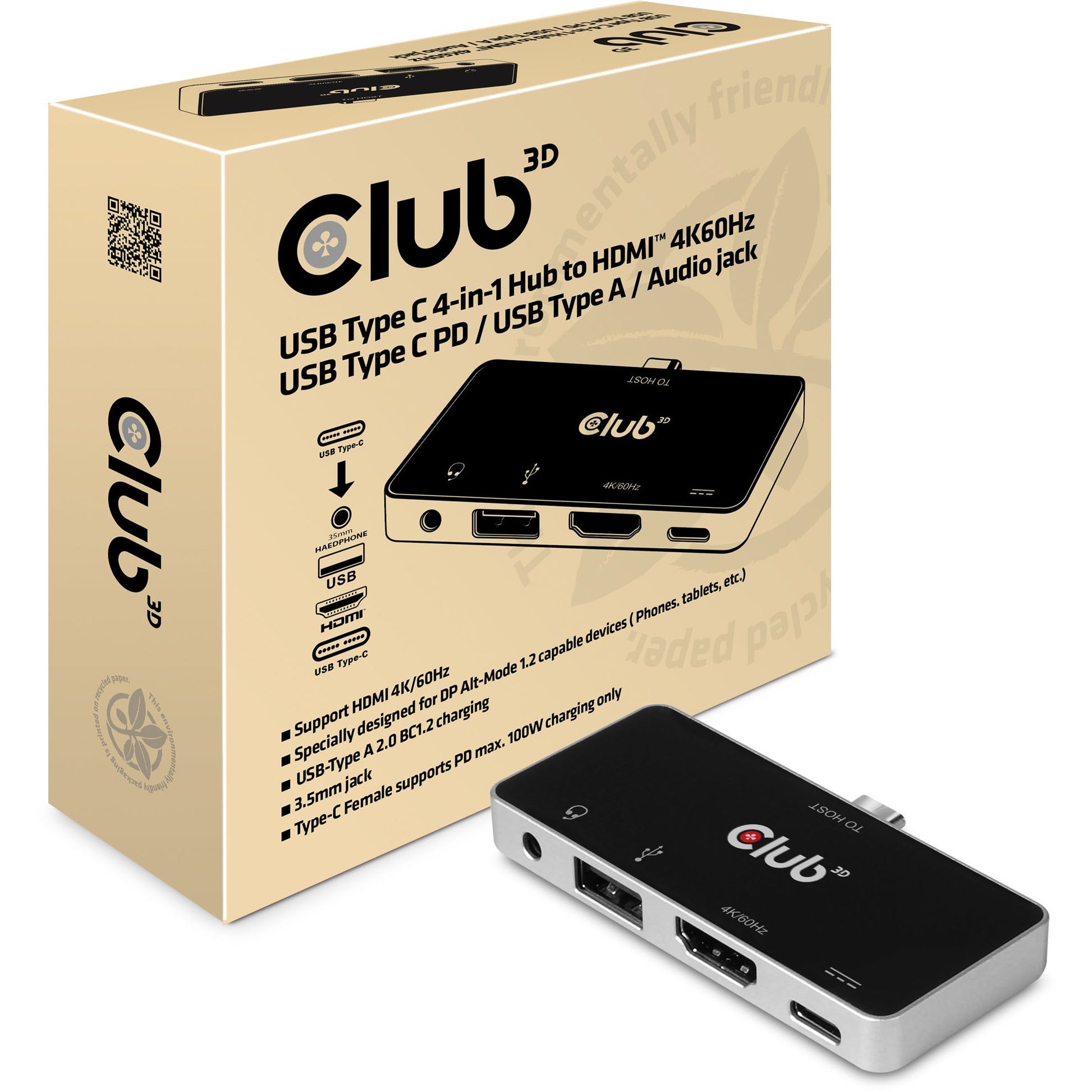 Club3D USB-C 4in1-HUB >HDMI/USB/USB-C/Audio 4K60Hz PD100W