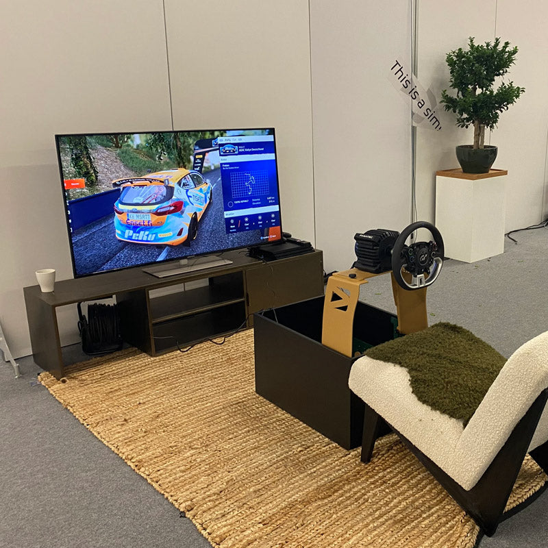 Kompaktes und leicht verstaubares Racing-Cockpit, zur Montage von Lenkrad und Pedalerie, ideal für die perfekte Rennsimulation, ergonomisch einstellbar, für Personen zwischen 120 - 210 cm Körpergröße, versteckbar in Form eines Möbelstücks