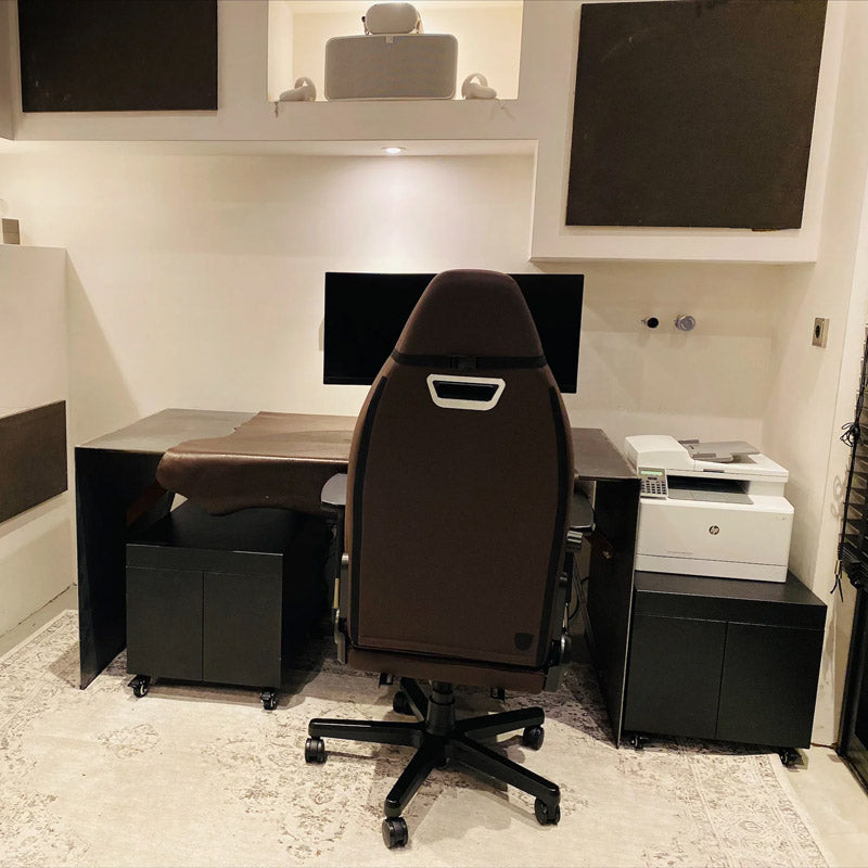 Kompaktes und leicht verstaubares Racing-Cockpit, zur Montage von Lenkrad und Pedalerie, ideal für die perfekte Rennsimulation, ergonomisch einstellbar, für Personen zwischen 120 - 210 cm Körpergröße, versteckbar in Form eines Möbelstücks