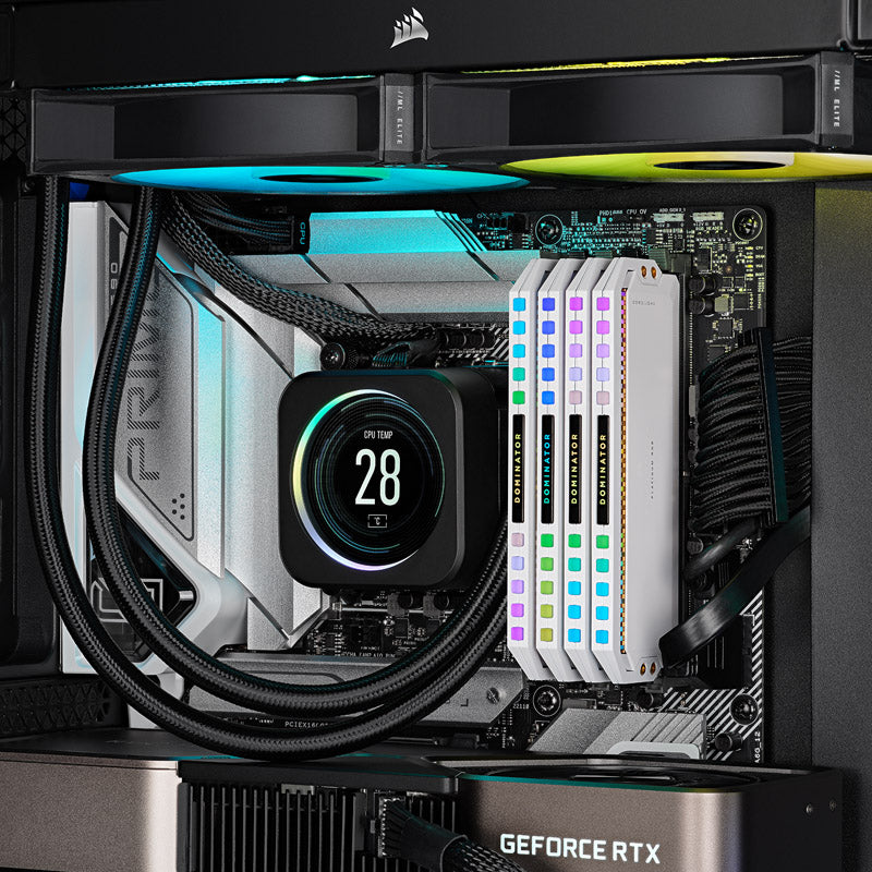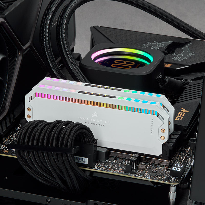 Der Corsair Dominator Platinum überzeugt nicht nur durch seine Performance mit einem Takt von 5.200 MHz und CL40-Latenzen, sondern auch durch seine elegante weißen Bauweise und die stilvolle RGB-Beleuchtung. Passen Sie die Beleuchtung an Ihre Stimmung oder Ihr Systemdesign an und sorgen Sie so für einen individuellen Look.