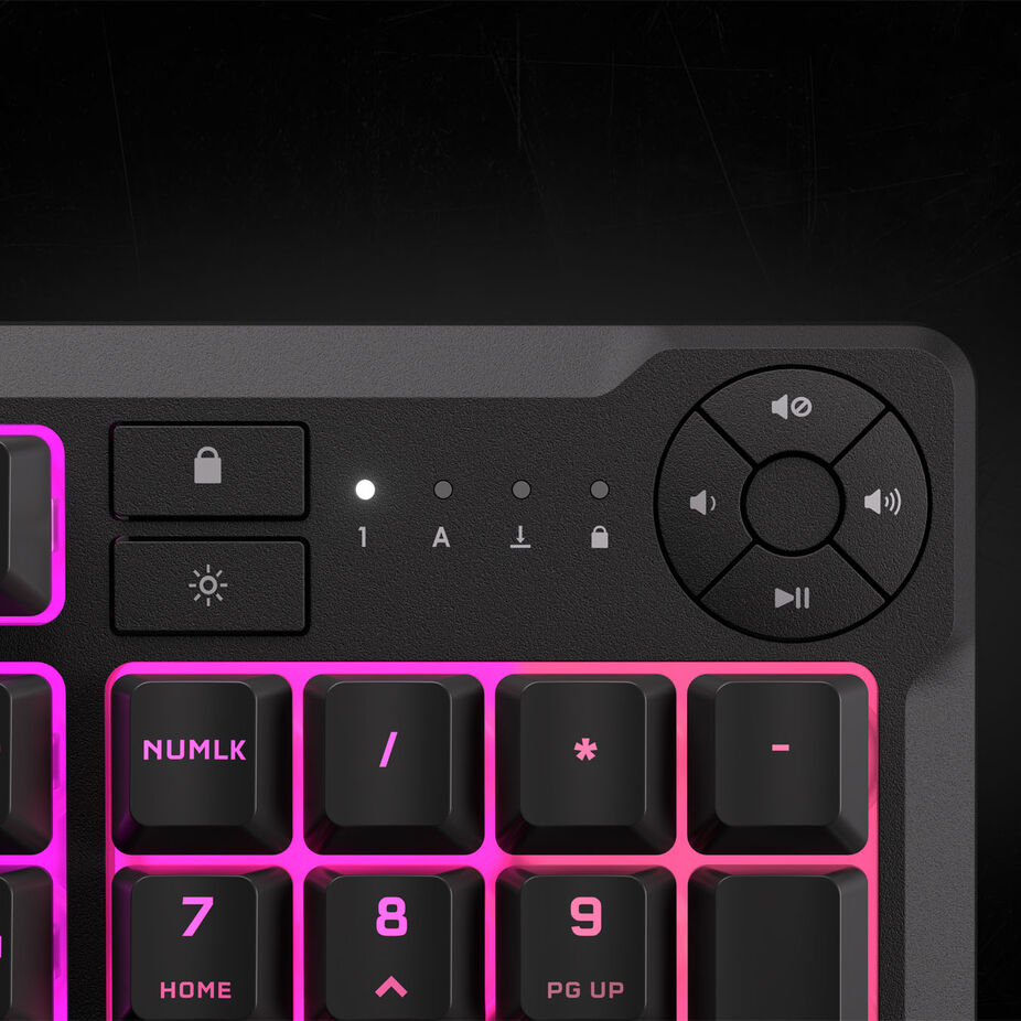 Mit der K55 Core profitieren Sie von programmierbaren Tasten, die es Ihnen ermöglichen, Ihre Lieblingsmakros und Kommandos im Handumdrehen zu steuern. Dies verbessert Ihre Effizienz während des Spiels erheblich und gibt Ihnen einen strategischen Vorteil gegenüber Ihren Gegnern.
