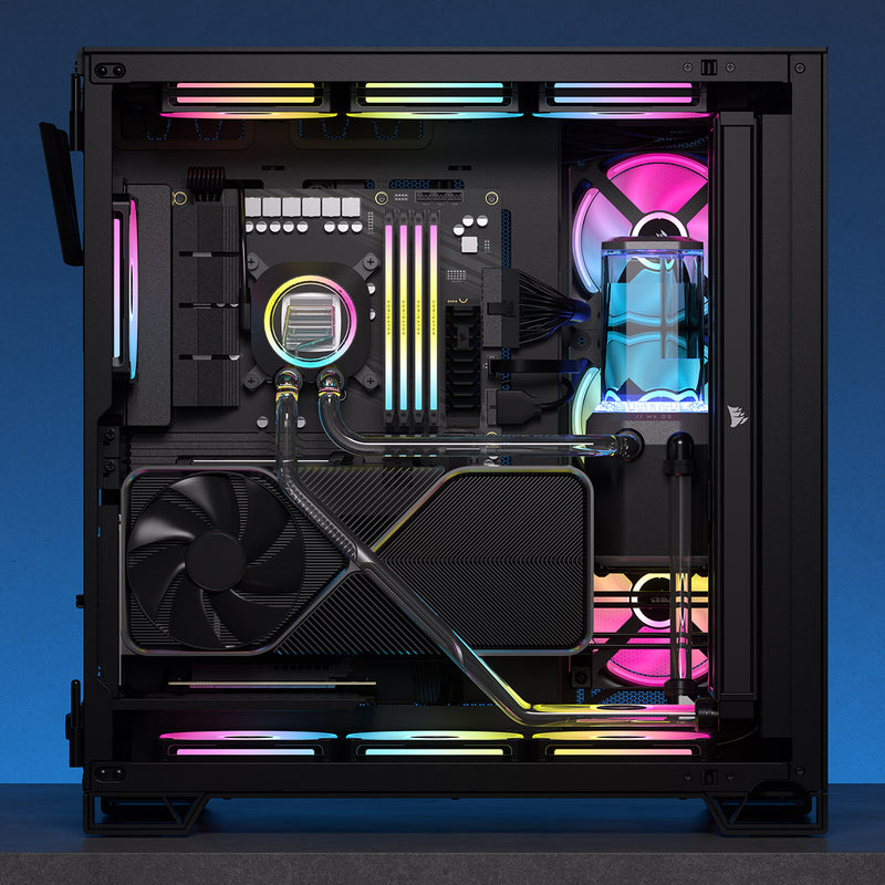 Die elegante, stealth gray Farbgebung sorgt dafür, dass das System sowohl in minimalistischen als auch in gamingerichteten Umgebungen hervorragend zur Geltung kommt. Advanced RGB-Beleuchtungseffekte bringen Leben in Ihr System und können durch die iCUE-Software von Corsair mühelos gesteuert werden, um die perfekte Atmosphäre zu schaffen.