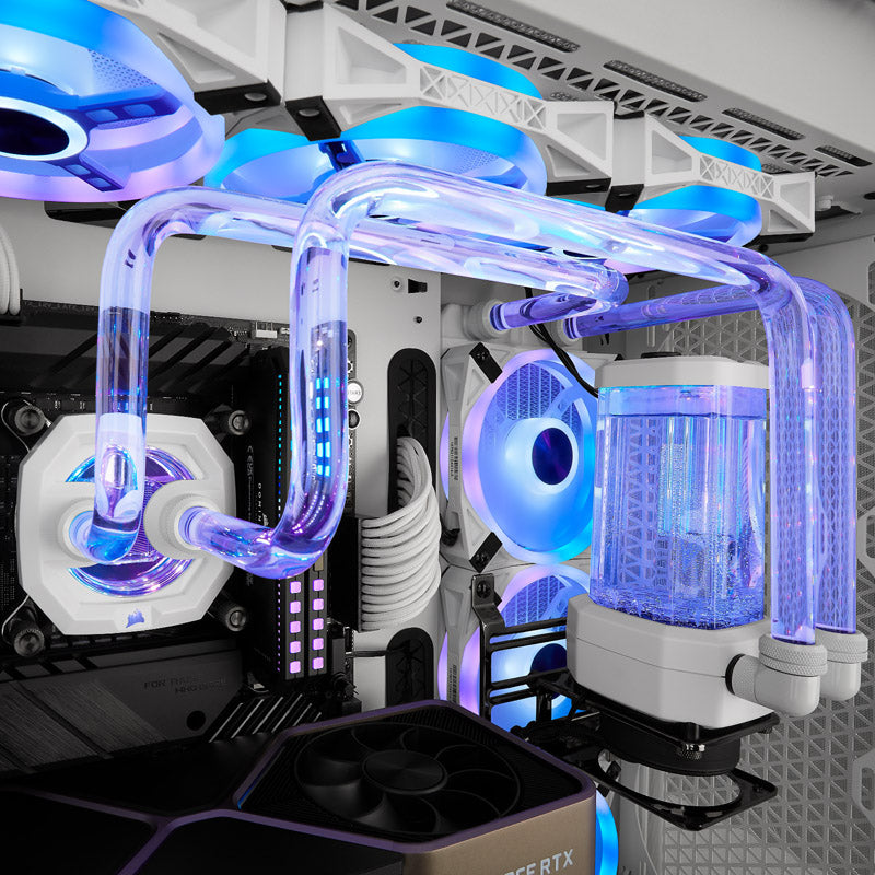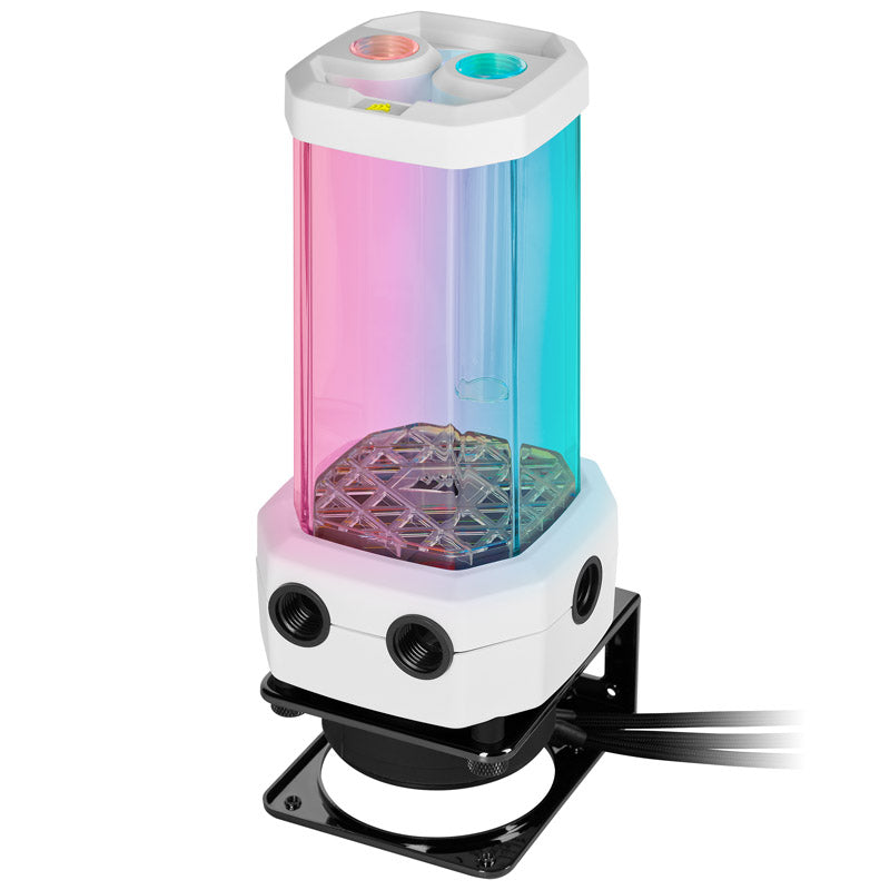 Das elegante weiße Design des Kühlers harmoniert perfekt mit jeder Gaming- oder Workstation-Konstruktion. Genießen Sie nicht nur die Vorteile der Wasserkühlung in Bezug auf Temperaturmanagement, sondern auch die kreative Freiheit, Ihr Setup mit RGB-Beleuchtung zu individualisieren.