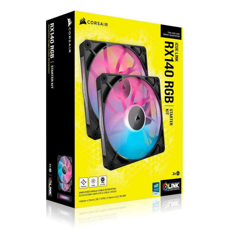 Corsair iCUE LINK RX140 RGB Series, PWM Lüfter 2er Pack - 140mm, schwarz