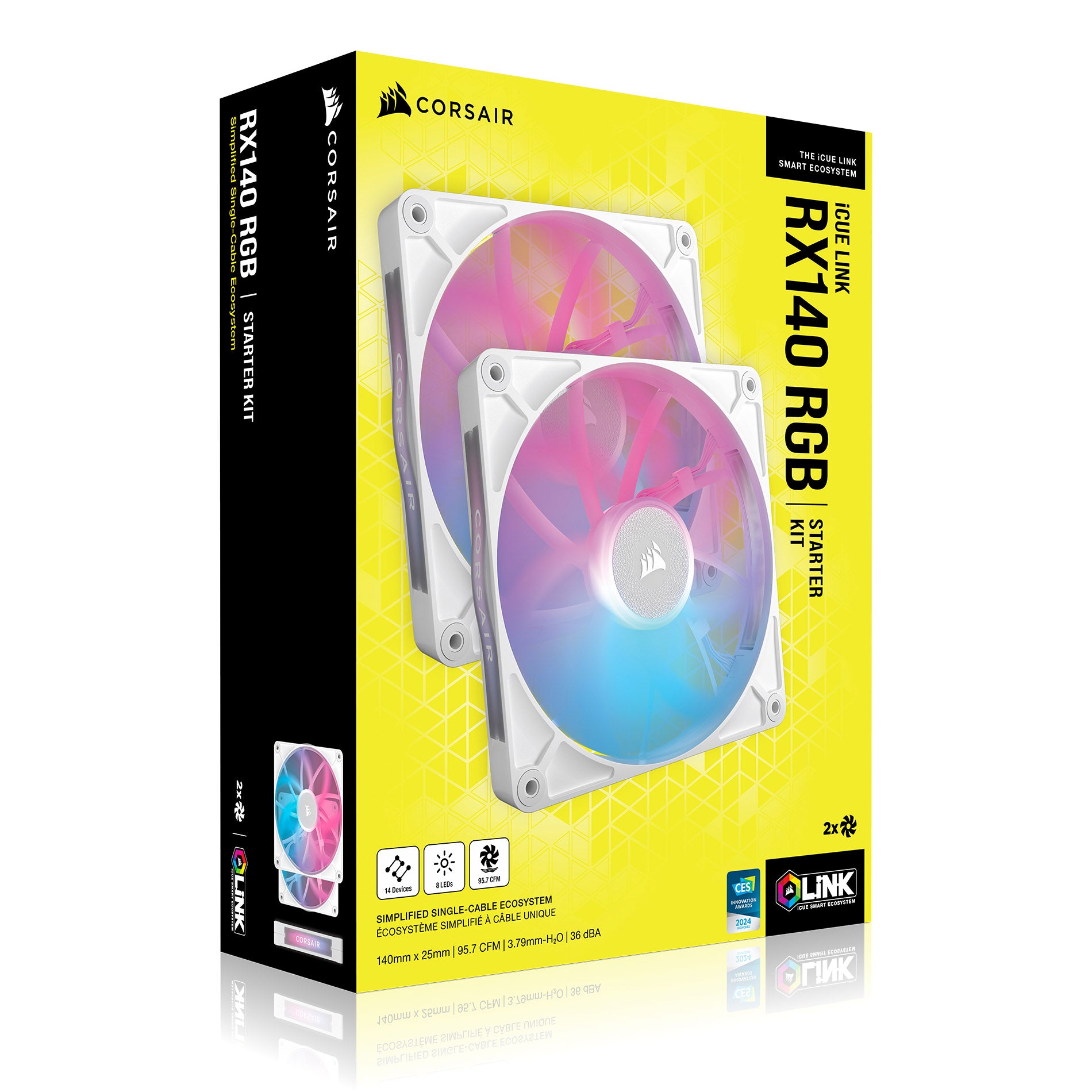 Corsair iCUE LINK RX140 RGB Series, PWM Lüfter 2er Pack - 140mm, weiß