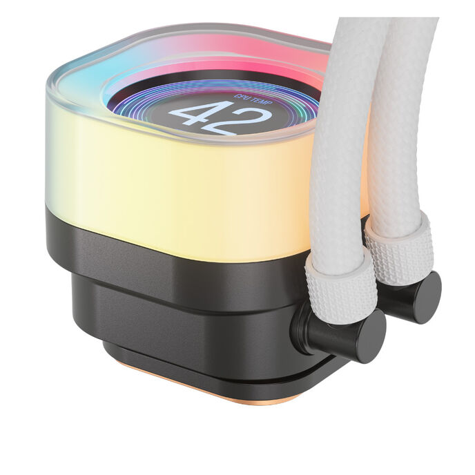 Dank der fortschrittlichen Technik sorgt die Titan 360 RX für eine effiziente Wärmeableitung, die auch bei höchsten Belastungen optimale Temperaturen garantiert. Die integrierte LCD-Anzeige ermöglicht es Ihnen, die Kühlmitteltemperatur jederzeit im Blick zu behalten, während sie gleichzeitig Licht- und Animationseffekte bietet, die Ihr System zum Strahlen bringen.
