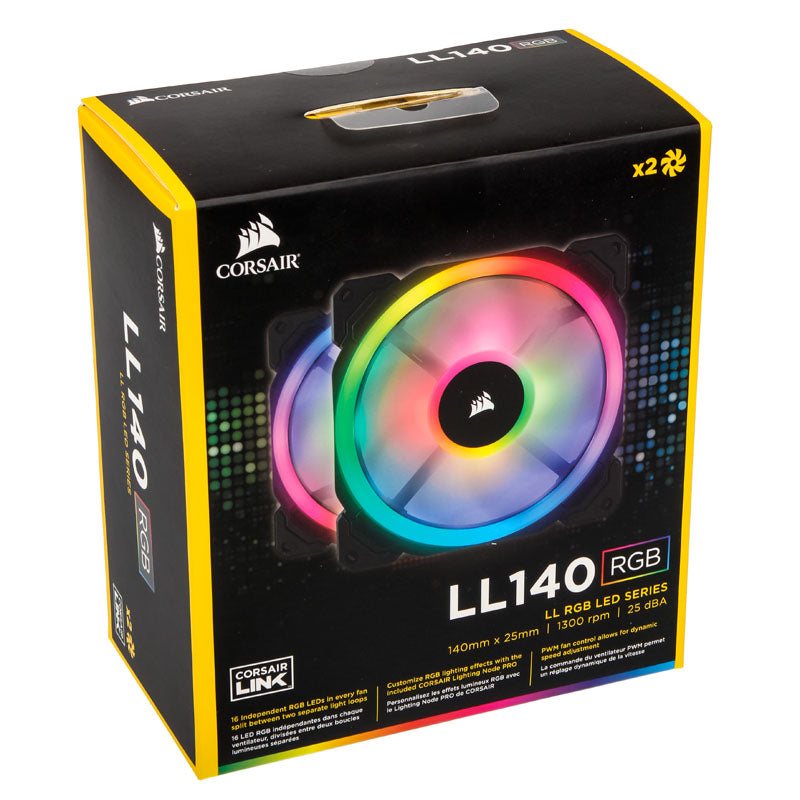 Corsair LL140 Node PRO High Performance PWM Lüfter (RGB), Twin Pack inkl. Controller - 140mm