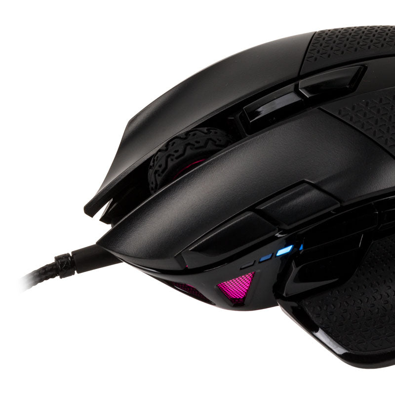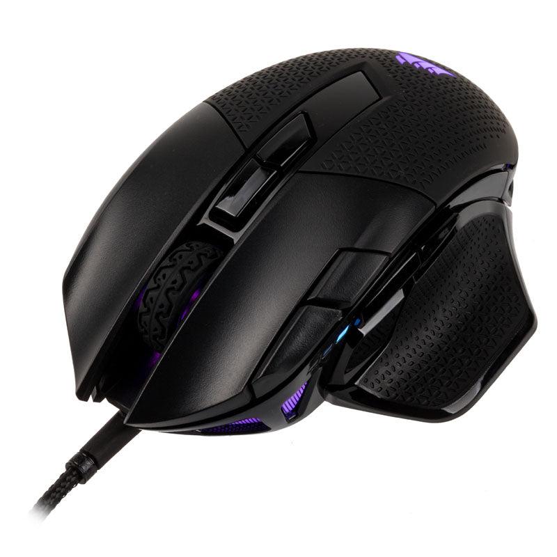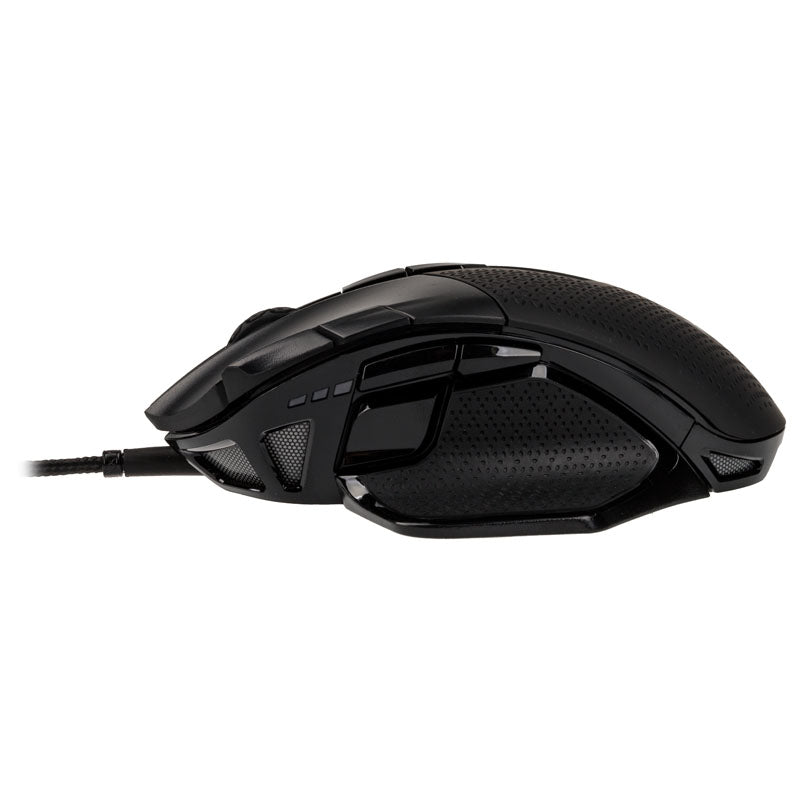 Schwarze Gaming-Maus von Corsair, mit RGB-LED-Beleuchtung (4 Zonen), optischer Sensor mit 18.000 DPI, 10 Tasten (8 programmierbar), gummierte Oberfläche