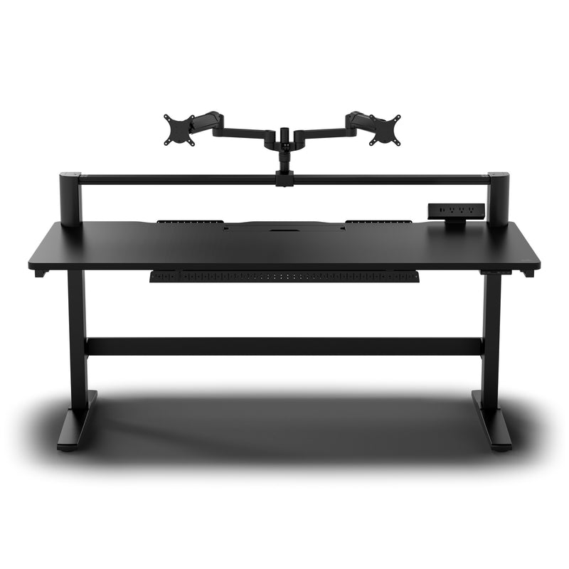 Riesiger Gaming-Tisch von Corsair, elektrisch höhenverstellbar mit LED-Anzeige, Beschichtete Tischplatte, Tischbeine aus Stahl, inklusive Monitorhalterung und Modularität