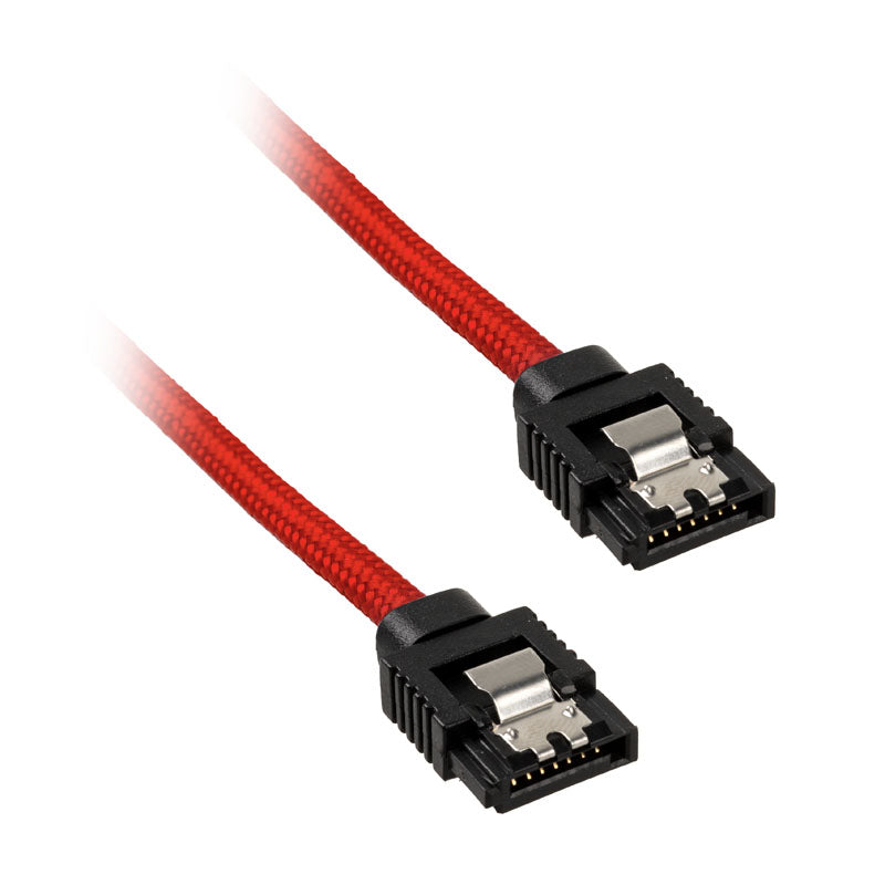 Zwei gesleevte SATA-6G-Kabel von Corsair, hochwertiger Paracord-Sleeve in Rot, 60 cm Länge, gerade Anschlüsse