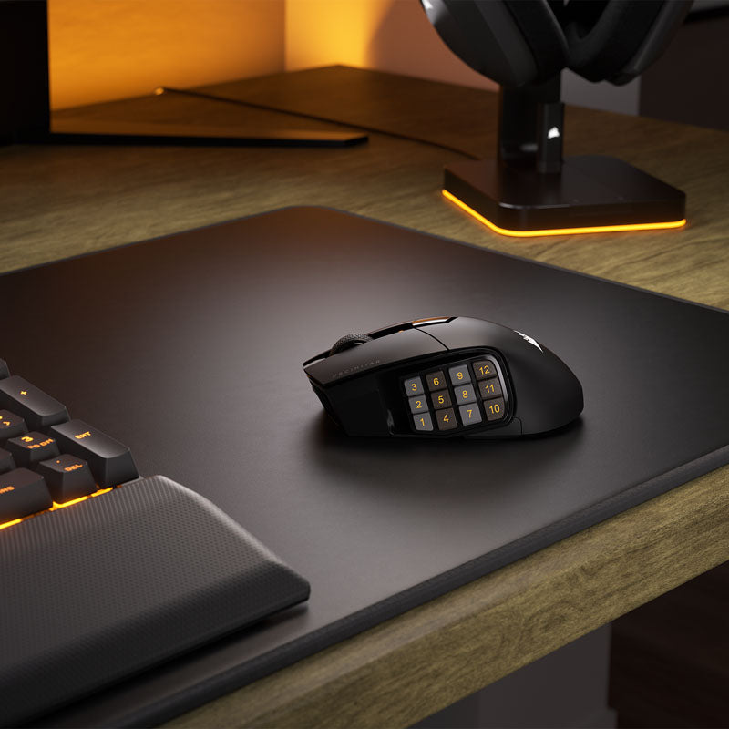Kabellose Gaming-Maus in Schwarz, Übertragung per 2,4 GHz (Slipstream) oder Bluetooth, optischer Sensor mit 26.000 DPI, 16 programmierbare Tasten, 2.000 Hz Polling-Rate, bis zu 150 h Akkulaufzeit