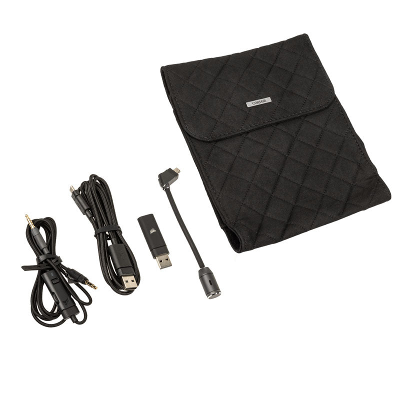 Kabelloses Stereo-Headset von Corsair, mit virtuellem 7.1 Surround-Sound mit Dolby Atmos, integrierte RGB-LED-Beleuchtung und USB-Adapter, schlichtes Design in Schwarz, bis zu 15 Stunden Akkulaufzeit