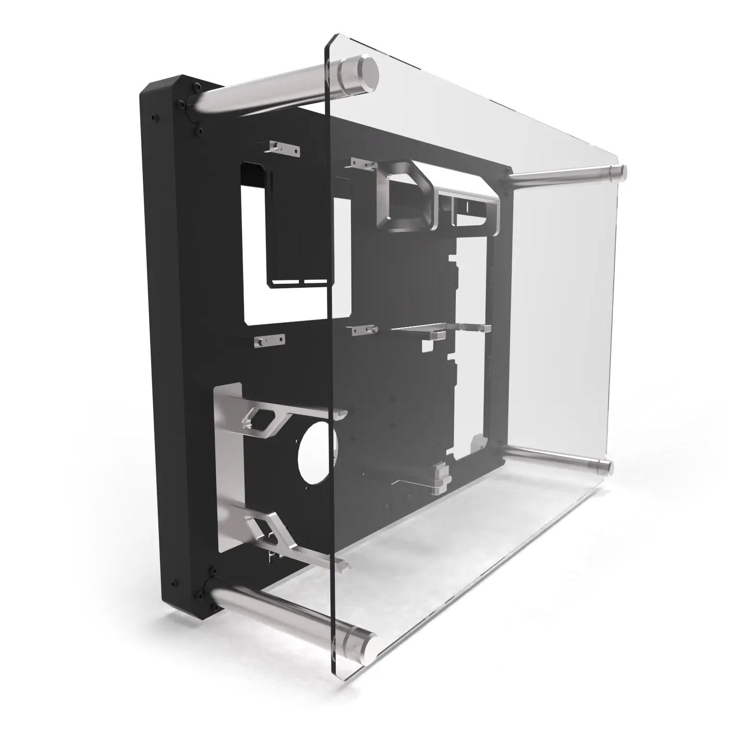 Wandmontierbares Showcase-Gehäuse, SFX / SFX-L-Formfaktor, vertikale GPU-Montage, Radiator bis 360 mm / Lüfter bis 120 mm, Grafikkarten bis 400 mm, für Custom-Wasserkühlungen und AIOs