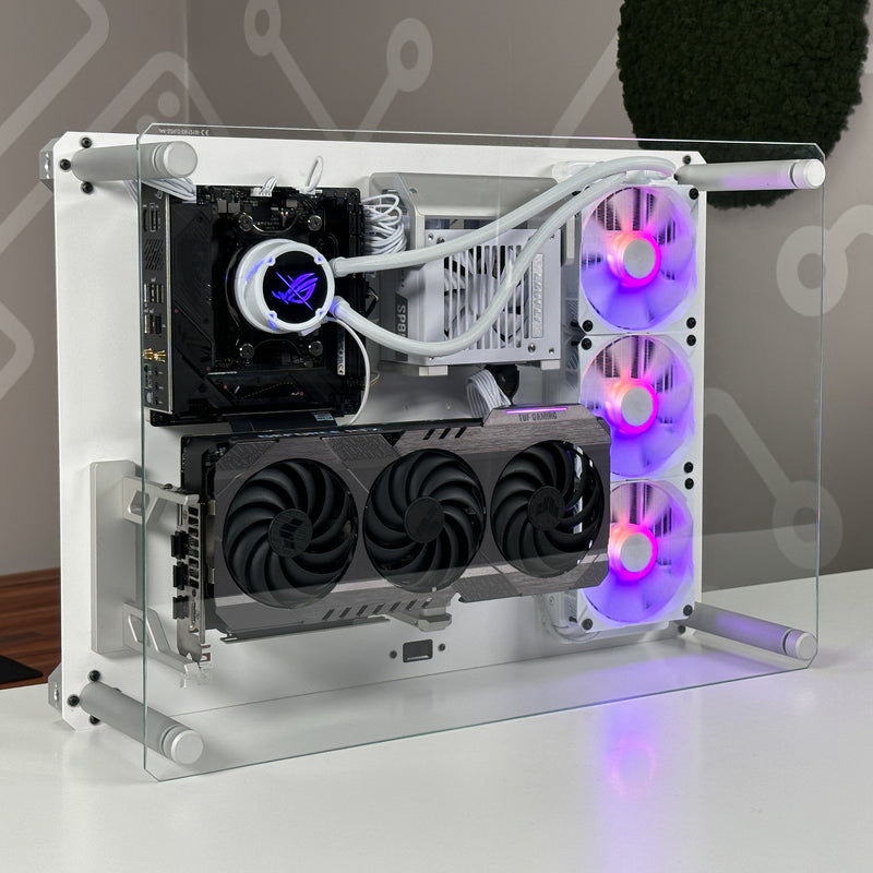 Wandmontierbares Showcase-Gehäuse, SFX / SFX-L-Formfaktor, vertikale GPU-Montage, Radiator bis 360 mm / Lüfter bis 120 mm, Grafikkarten bis 400 mm, für Custom-Wasserkühlungen und AIOs