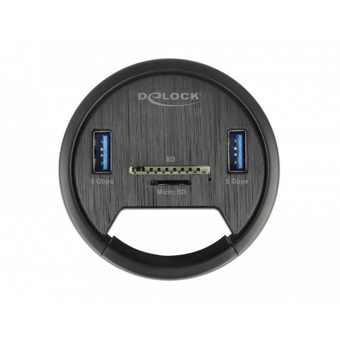DELOCK 2 Port Tisch-Hub 2x SuperSpeed USB Typ-A und Card Reader fur SD und Micro