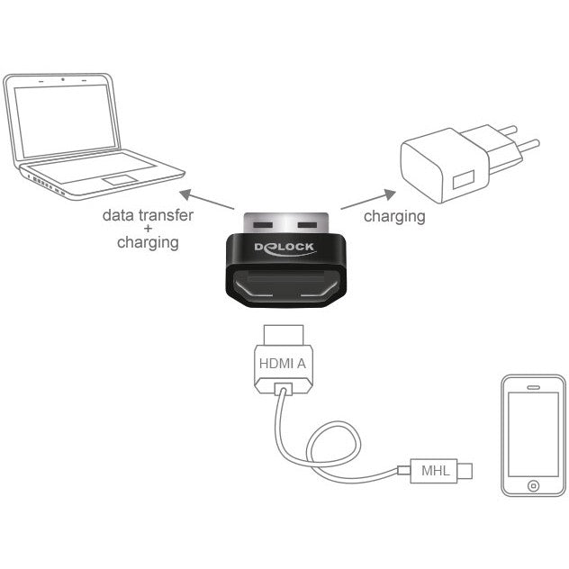 DeLOCK HDMI/USB-A. Produktfarbe: Schwarz. Silber. Breite: 16.6 mm. Tiefe: 23.4 mm. Höhe: 6.8 mm. Verpackungsart: Box. Menge pro Packung: 1 Stück(e)