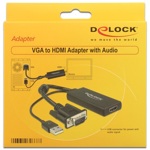 DELOCK Adapter VGA + Audio zu HDMI mit Kabel schwarz