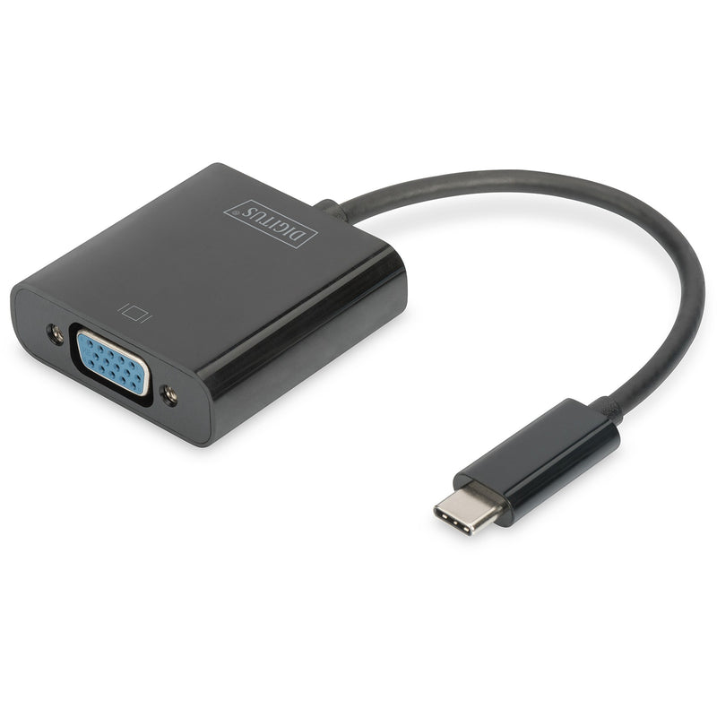 Digitus USB Type-C™ VGA Grafik-Adapter. USB-Version: 3.2 Gen 1 (3.1 Gen 1). USB-Stecker: USB Typ-C. USB-Anschluss Geschlecht: Männlich. Produktfarbe: Schwarz. Breite: 45 mm. Tiefe: 45 mm. Höhe: 15 mm. Verpackungsbreite: 100 mm. Verpackungstiefe: 150 mm. Paketgewicht: 48.5 g. Ursprungsland: China