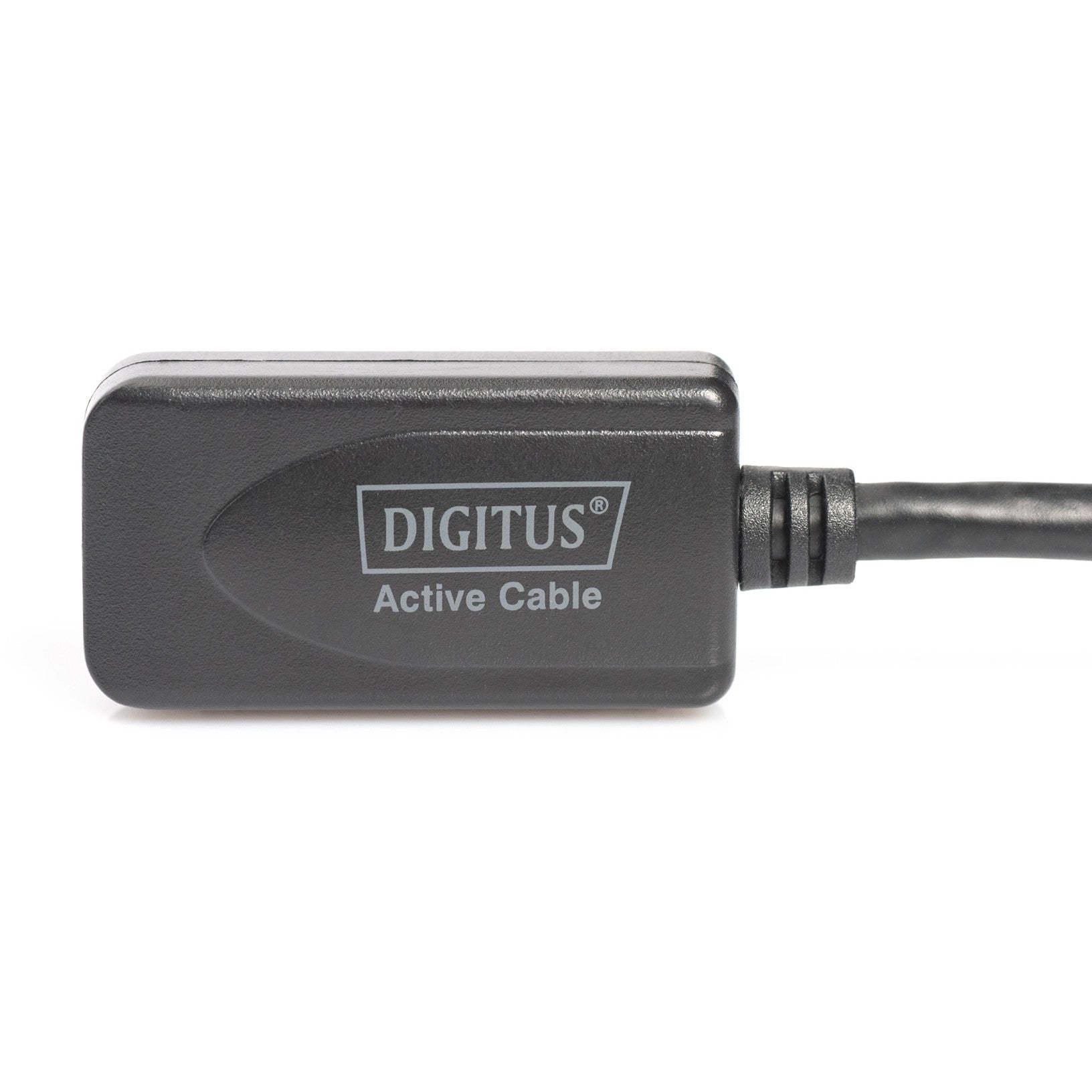 Digitus Aktives USB 2.0 Verlängerungskabel. 20 m. Kabellänge: 20 m. Anschluss 1: USB A. Anschluss 2: USB A. USB-Version: USB 2.0. Steckerverbindergeschlecht: Männlich/Weiblich. Max. Datenübertragungsrate: 0.48 Gbit/s. Beschichtung Steckerkontakte: Nickel. Produktfarbe: Schwarz