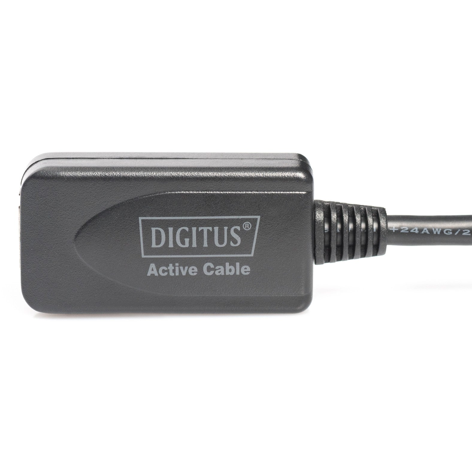 Digitus Aktives USB 2.0 Verlängerungskabel. 5m. Kabellänge: 5 m. Anschluss 1: USB A. Anschluss 2: USB A. USB-Version: USB 2.0. Steckerverbindergeschlecht: Männlich/Weiblich. Max. Datenübertragungsrate: 0.48 Gbit/s. Produktfarbe: Schwarz