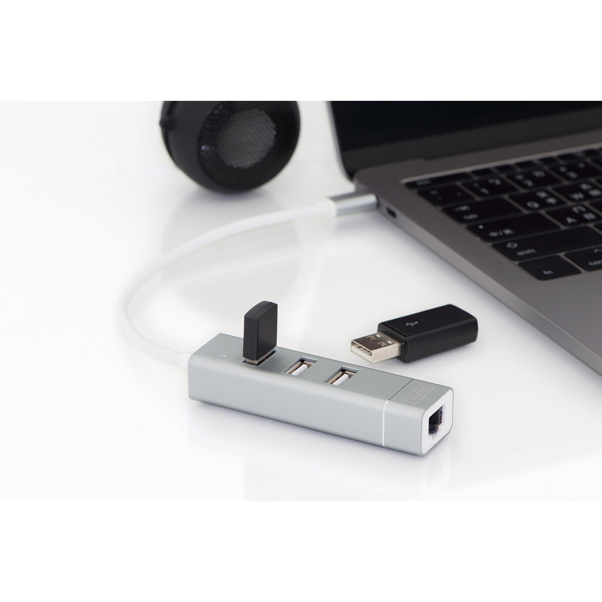 DIGITUS USB Adapter USB2.0/C -> RJ45 Ethernet+3-Port-Hub wei