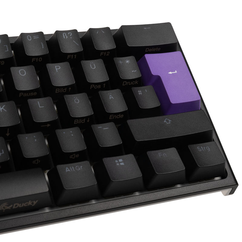 Die Ducky One 2 Mini ist mit Cherry MX Black Switches ausgestattet, die für eine präzise und reaktionsschnelle Tastenbetätigung sorgen. Jeder Tastendruck wird optimal übertragen, was besonders in hektischen Spielsituationen von Vorteil ist. Die hochwertigen PBT-Double-Shot-Tastenkappen garantieren nicht nur eine lange Lebensdauer, sondern auch ein angenehmes Tippgefühl.