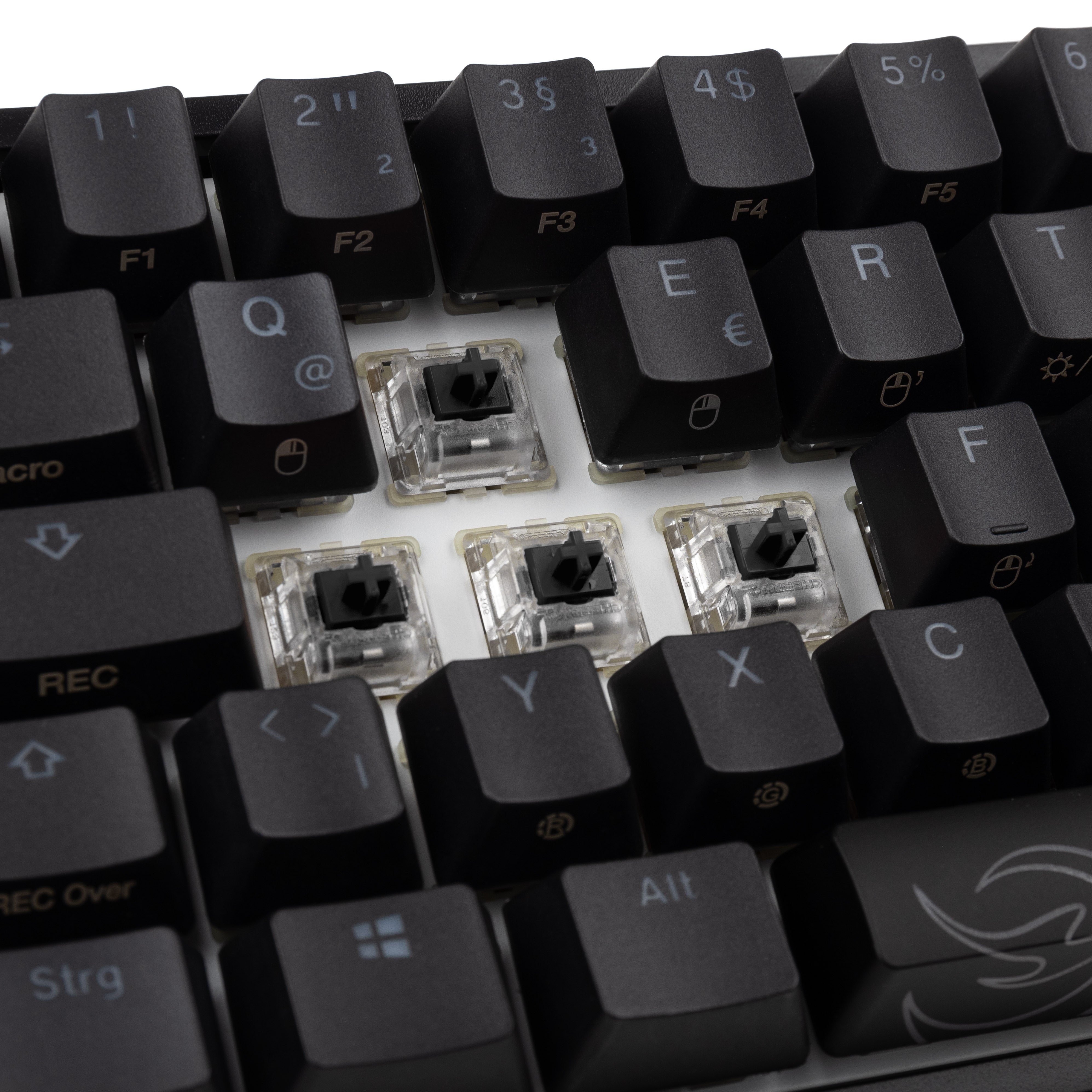 Die mechanischen Cherry MX Black Switches bieten ein herausragendes Tipperlebnis mit einer hohen Haltbarkeit. Diese Switches sind bekannt für ihren linearen Widerstand und die gleichmäßige Betätigung, was Ihnen einen Vorteil im Wettkampf um Präzision und Geschwindigkeit verschafft.