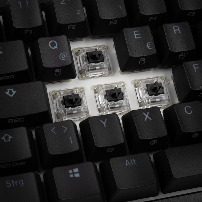Ausgestattet mit Cherry-MX-Black-Switches, garantiert diese Tastatur ein hervorragendes Tipperlebnis, das sowohl für Gaming als auch für produktives Arbeiten geeignet ist. Die robusten PBT-Double-Shot-Tastenkappen sorgen für Langlebigkeit und angenehmen Tastenanschläge, sodass Sie auch in intensiven Spielsituationen nichts an Präzision verlieren.