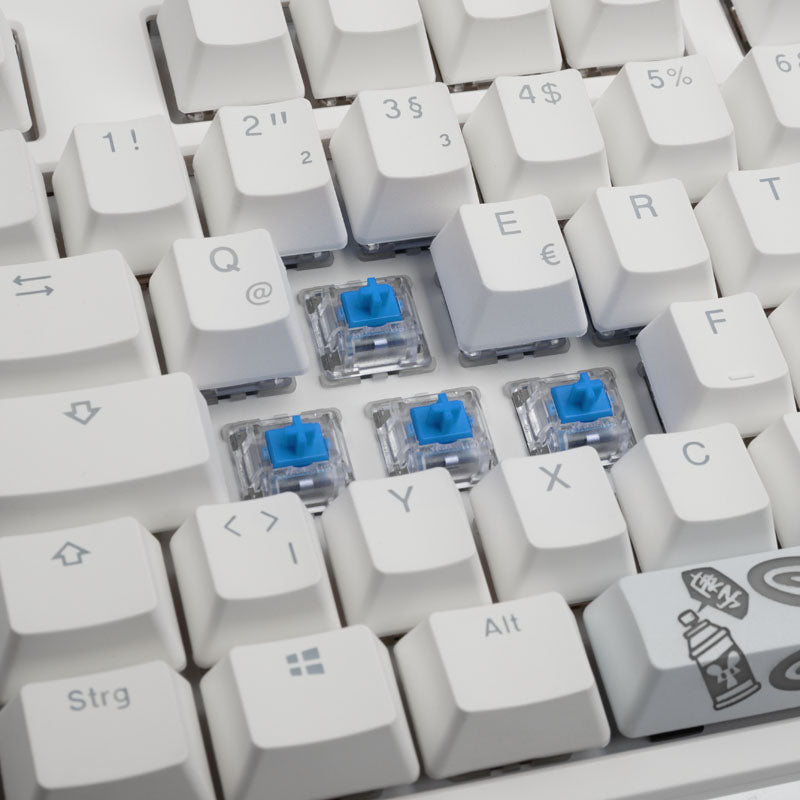 Die Ducky One 2 TKL ist mit Cherry MX Blue Switches ausgestattet, die für ihr taktiles Feedback und den charakteristischen Klicksound bekannt sind. Diese Schalter ermöglichen eine präzise Eingabe und bieten ein hervorragendes Schreibgefühl, das sowohl beim Gaming als auch beim Schreiben von Texten überzeugt.