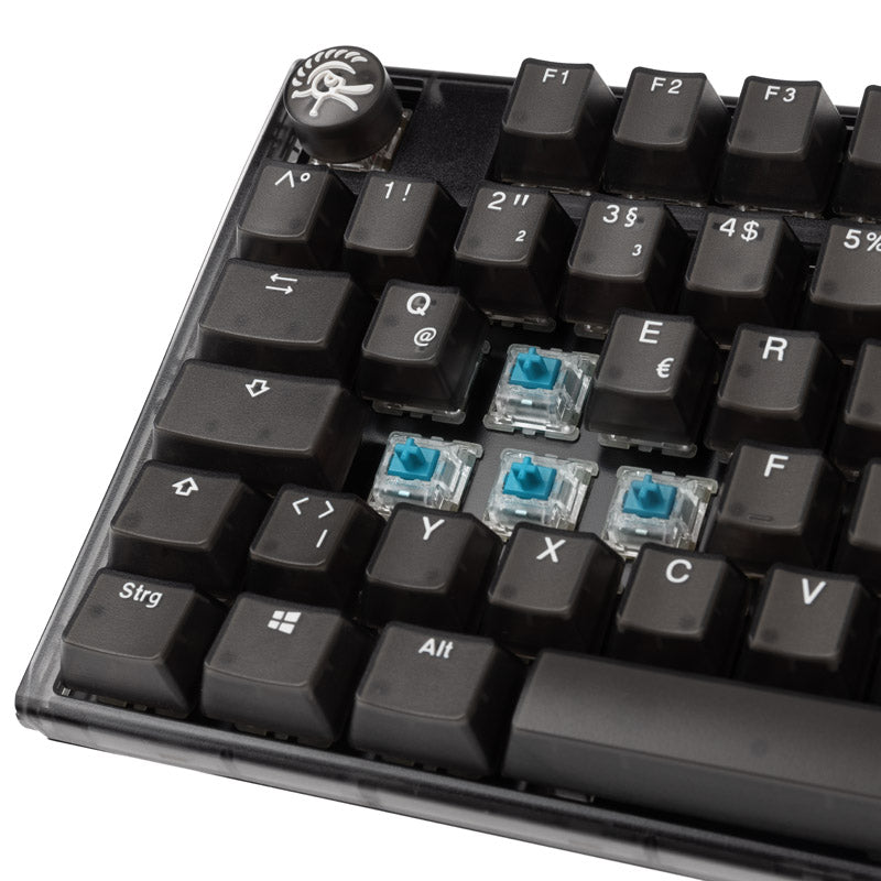 Das deutsche Tastenlayout sorgt dafür, dass Sie auch bei intensiven Gaming-Sessions schnell und präzise tippen können. Die Hot-Swap-Funktion ermöglicht es Ihnen, die mechanischen Switches ohne Löten auszutauschen, sodass Sie die Tastatur ganz nach Ihren Wünschen anpassen können. Ausgestattet mit den beliebten Cherry MX Blue Switches bieten die Tasten ein taktiles Feedback und ein hörbares Klickgeräusch, was Ihr Spielerlebnis noch intensiver macht.