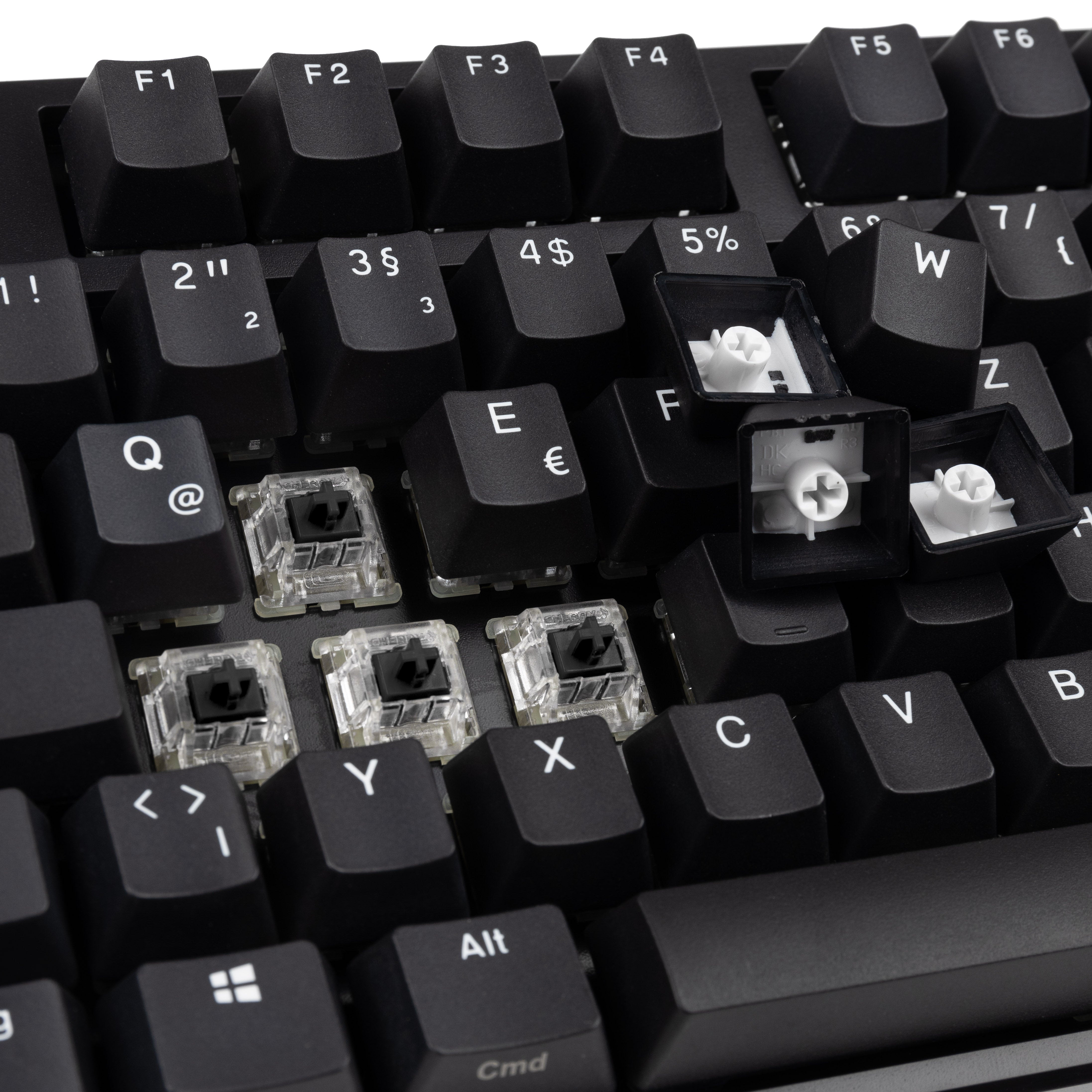 Die Ducky Origin ist im Fullsize-Format gestaltet und bietet ein deutsches Tastenlayout (ISO DE), das ein komfortables und effizientes Tippen ermöglicht. Die mechanischen Cherry MX Black Switches stehen für erstklassige Qualität und bieten ein herausragendes Tipperlebnis, das durch ihre lineare Betätigung überzeugt. Ideal für Gamer, die Wert auf Präzision und schnelle Reaktionszeiten legen.