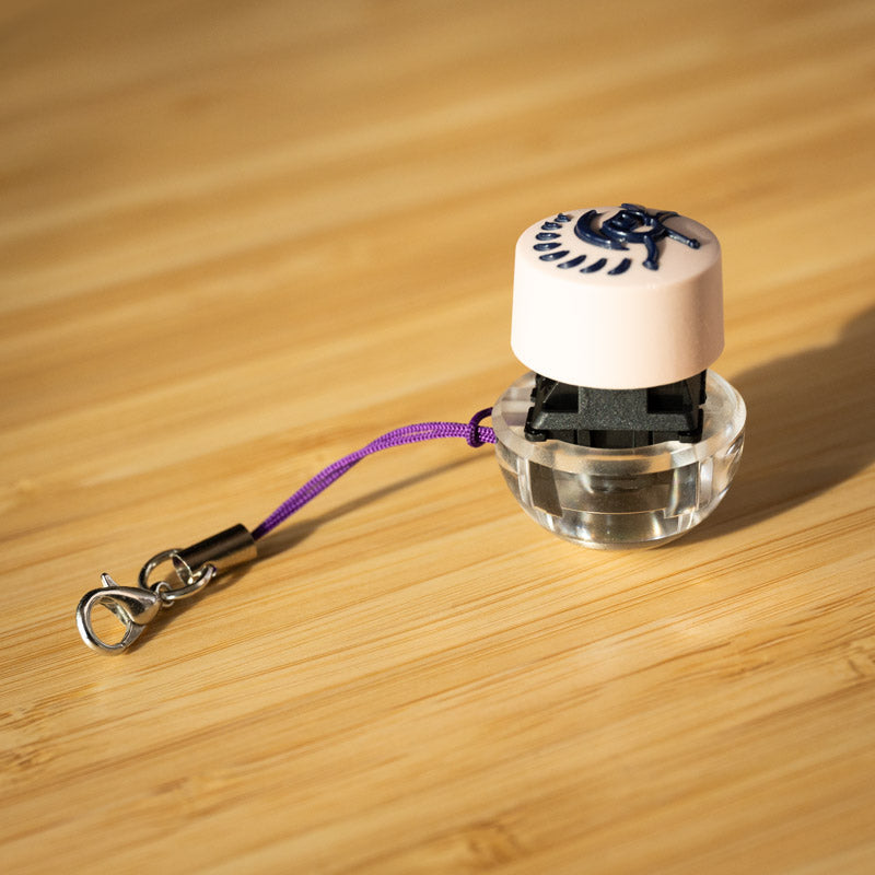 Schlüsselanhänger von Ducky, Keycap mit Ducky-Logo, mit funktionsfähigem Cherry MX Blue Switch, abgerundete Unterseite für einen Wackeleffekt