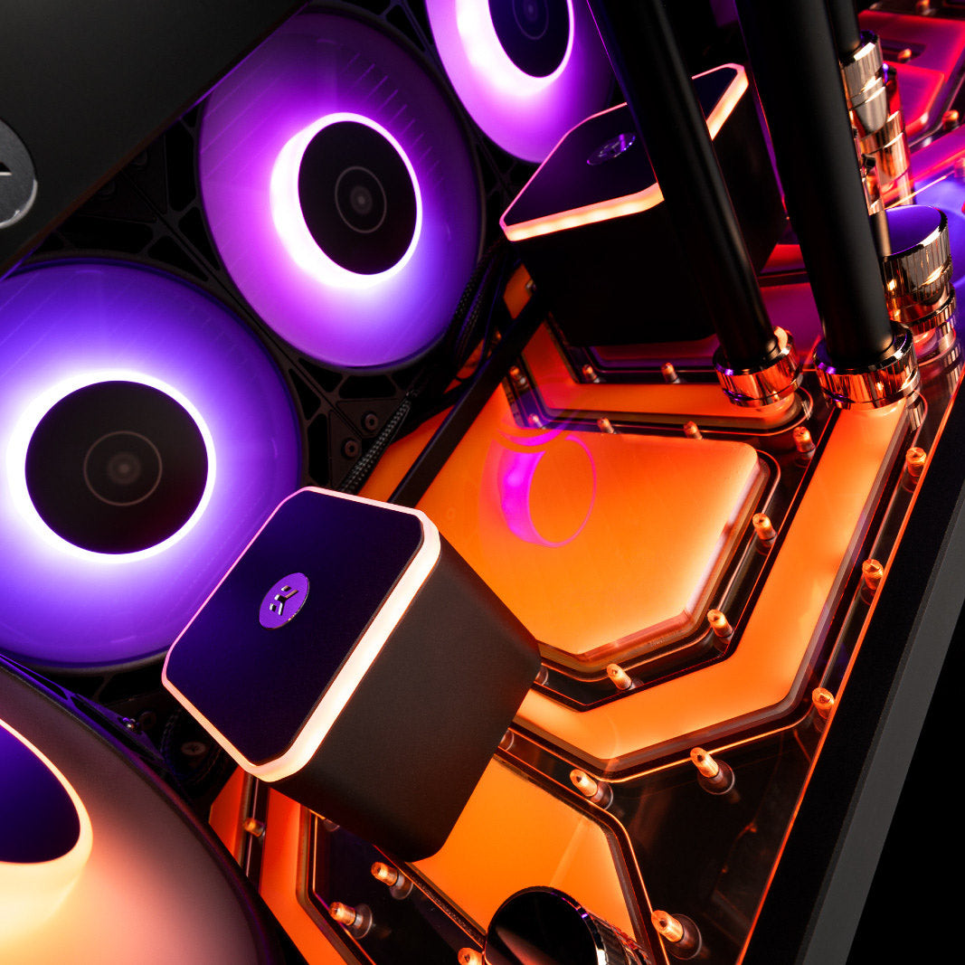 Die integrierte RGB-Beleuchtung sorgt für eine beeindruckende visuelle Darstellung und lässt sich nahtlos in Ihr bestehendes Setup integrieren. Fügen Sie einen Hauch von Dynamik und Farbe hinzu, während Sie die Leistung Ihrer Kühlungskomponenten optimal unterstützen.