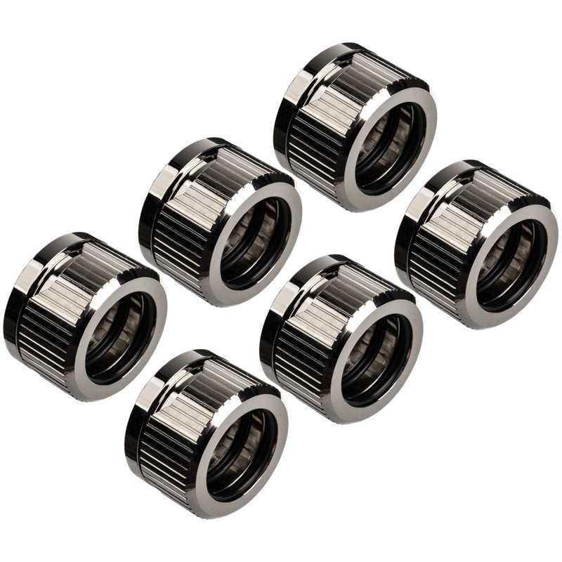 Dank der Verwendung von robustem, vernickeltem Material sind diese Fittings nicht nur langlebig, sondern sorgen auch für eine ansprechende Ästhetik in Ihrem PC-Gehäuse. Im praktischen 6er-Pack sind sie perfekt geeignet für umfangreiche Kühlprojekte oder um Ihre bestehende Konfiguration stilvoll aufzurüsten.