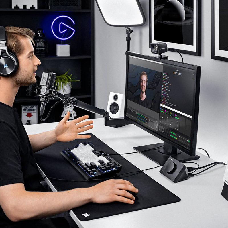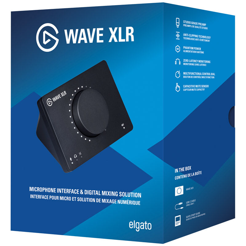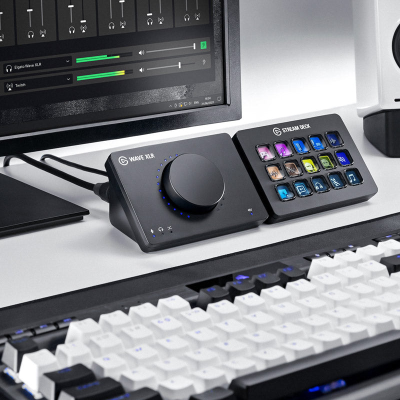 Professionelle Schnittstelle für XLR-Mikrofone, mit Lautstärkekontrolle und Verstärkerfunktion, Mixing und Crossfading mit PC-Input, zwei selektierbare Filterfunktionen, kompatibel zu Elgatos Stream Deck