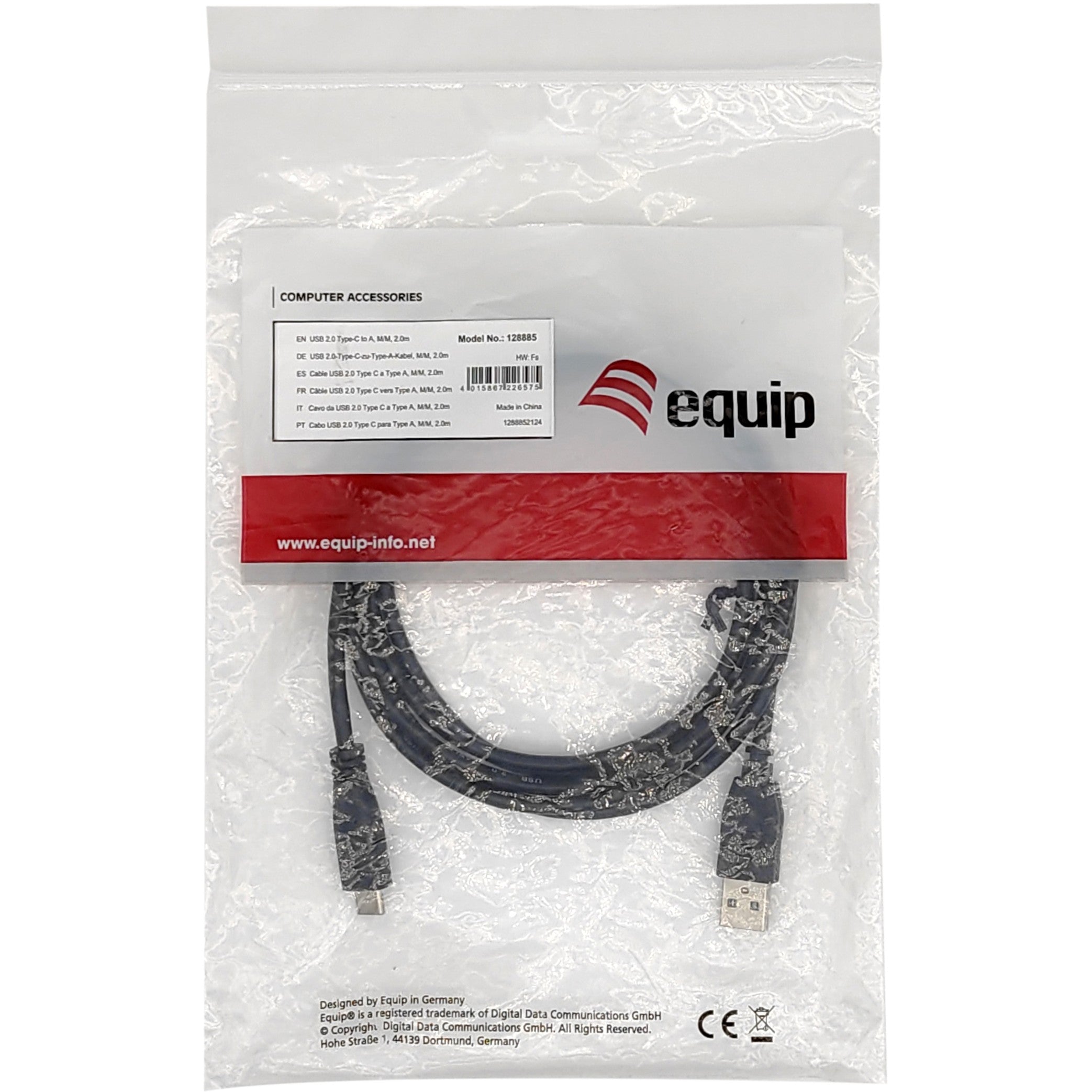 Equip Kabel USB-A 2.0 -> C St/St 2.00m 3A 480Mbps sw