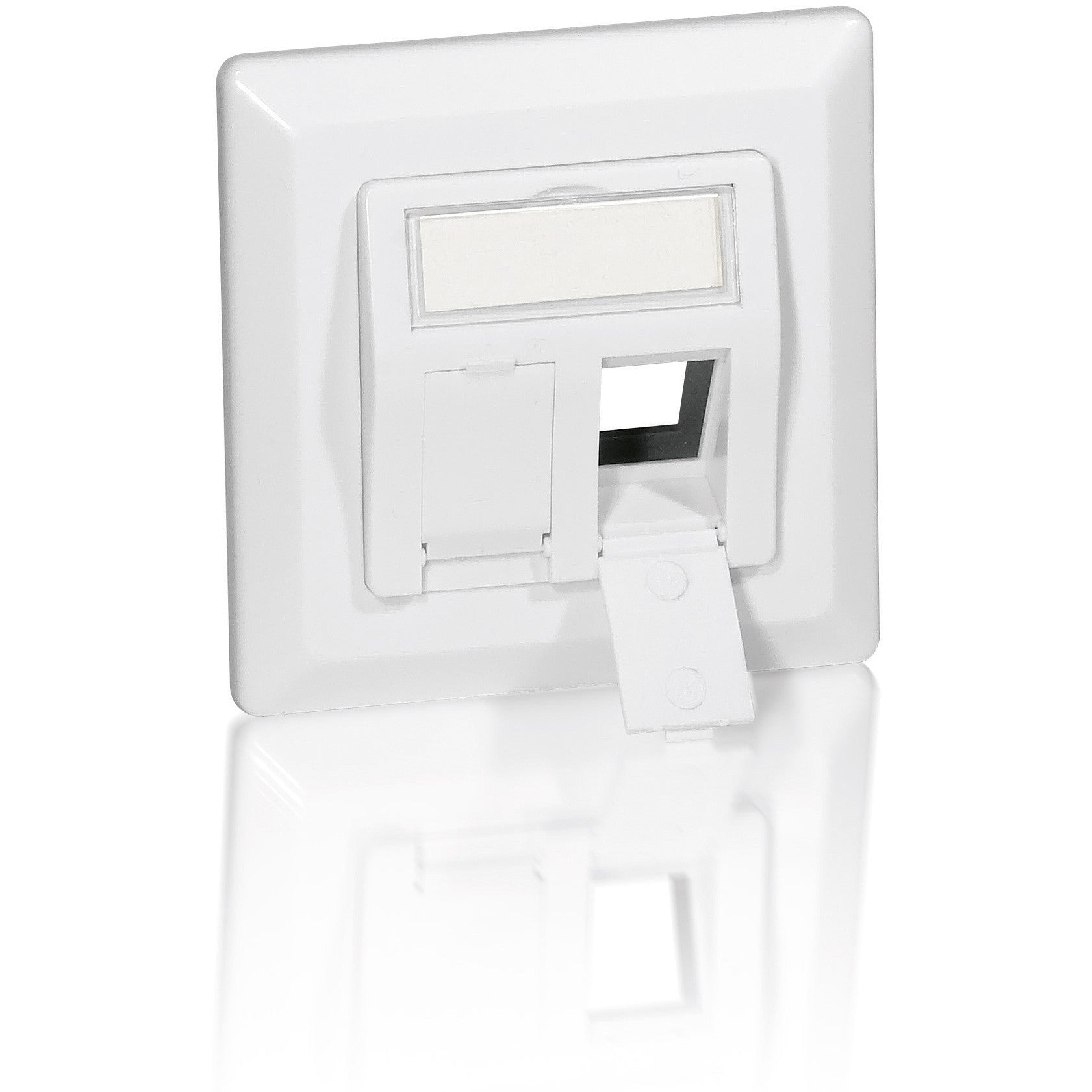 Equip 2-Port Deutsche Frontplatte. Produktfarbe: Weiß. Markenkompatibilität: Jede Marke. Breite: 80 mm. Höhe: 80 mm. Dicke: 7.5 mm. Menge pro Packung: 5 Stück(e). Verpackungsbreite: 160 mm. Verpackungstiefe: 89 mm