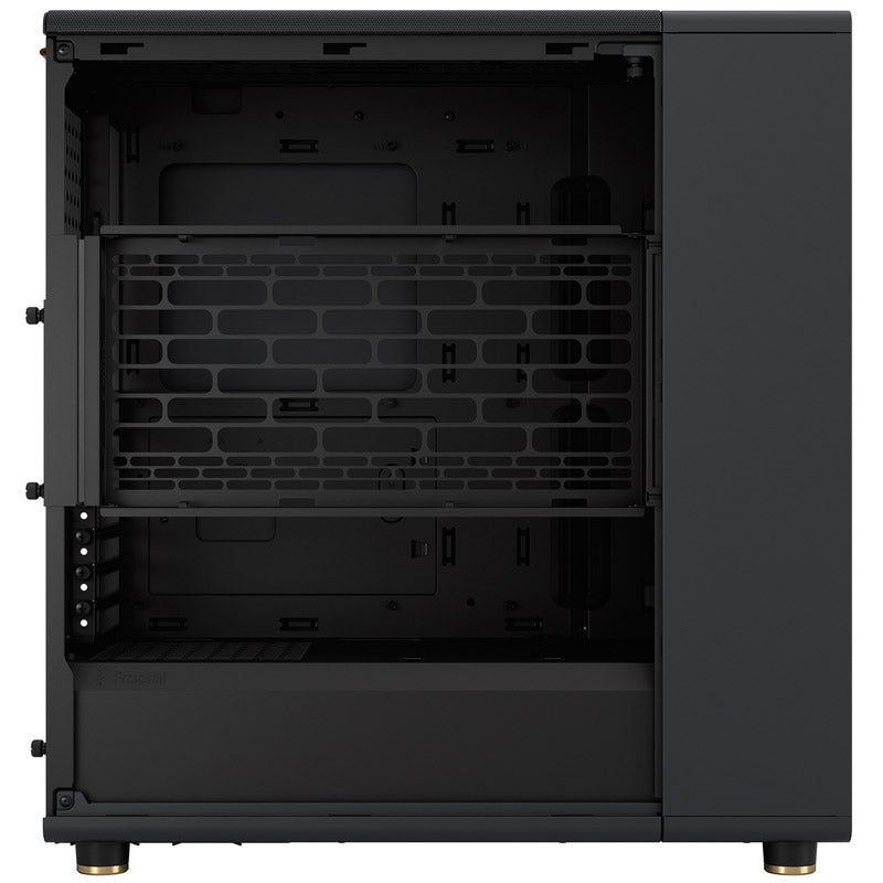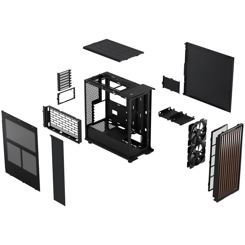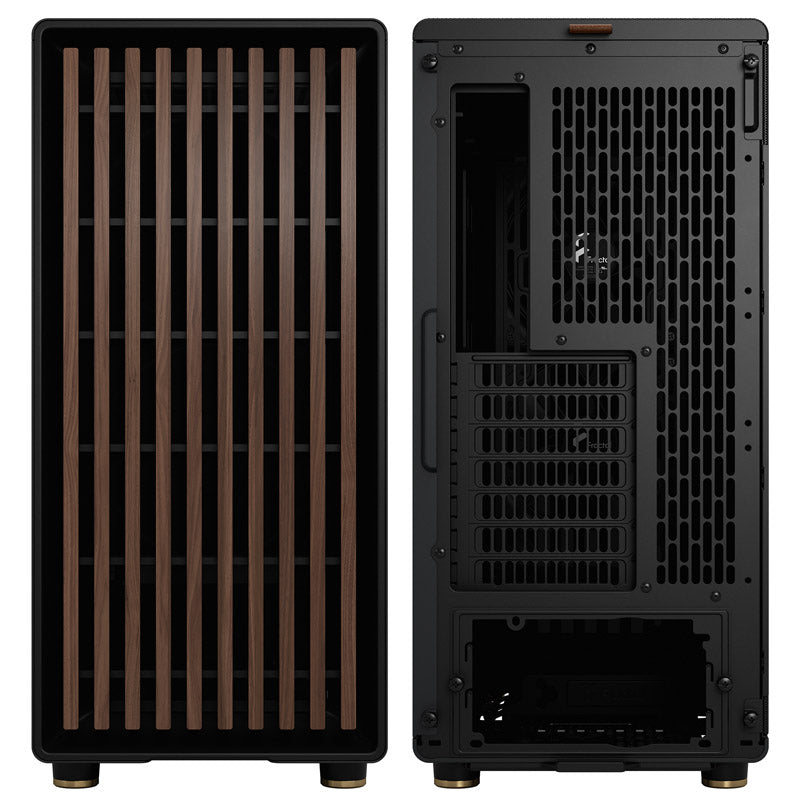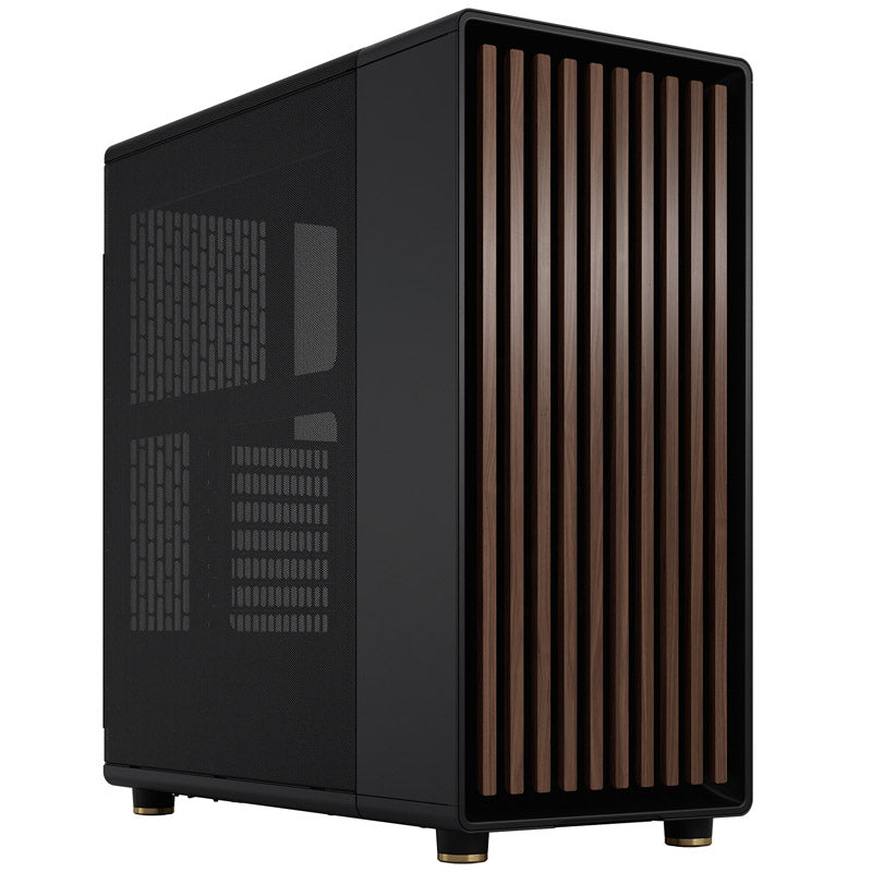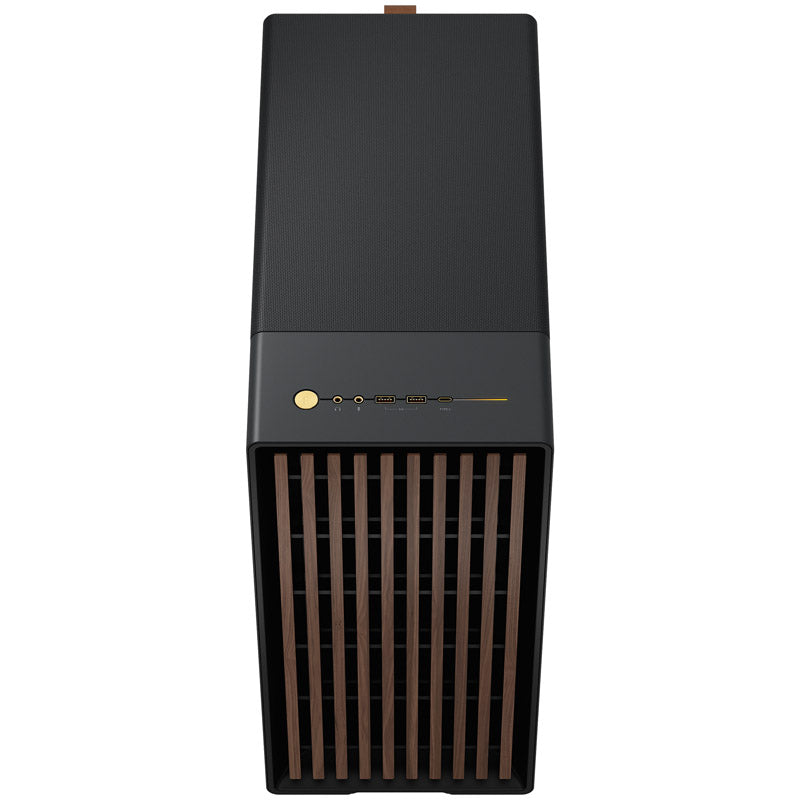 Eleganter Midi-Tower für Gaming-PCs, mit Front aus Walnussholz, Seitenteil mit Mesh, bis zu 8x 120-mm-Lüfter, bis zu 2x 3,5-Zoll oder 4x 2,5-Zoll-Laufwerke, I/O-Panel mit 1x USB 3.1 Typ C und 2x USB 3.0 Typ A