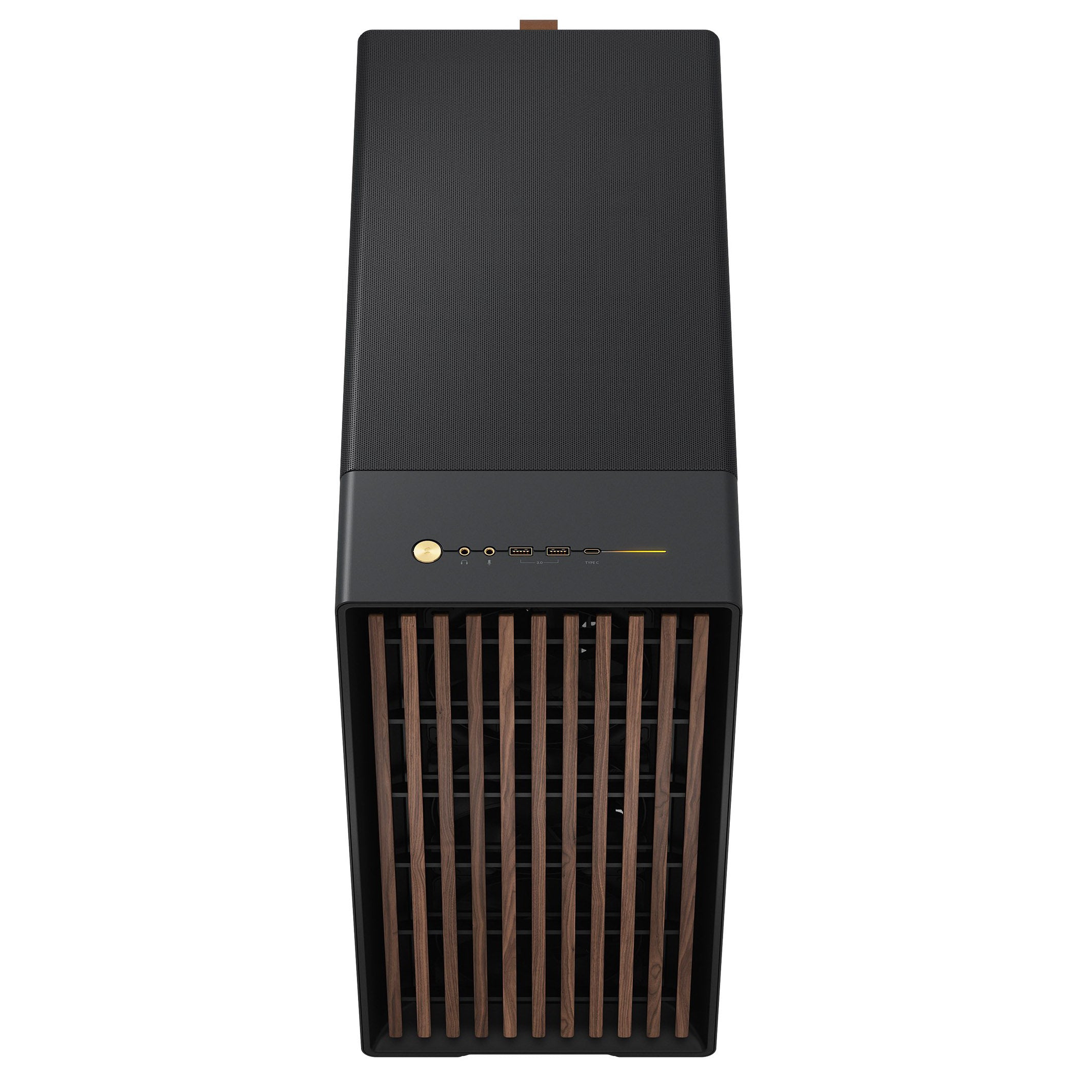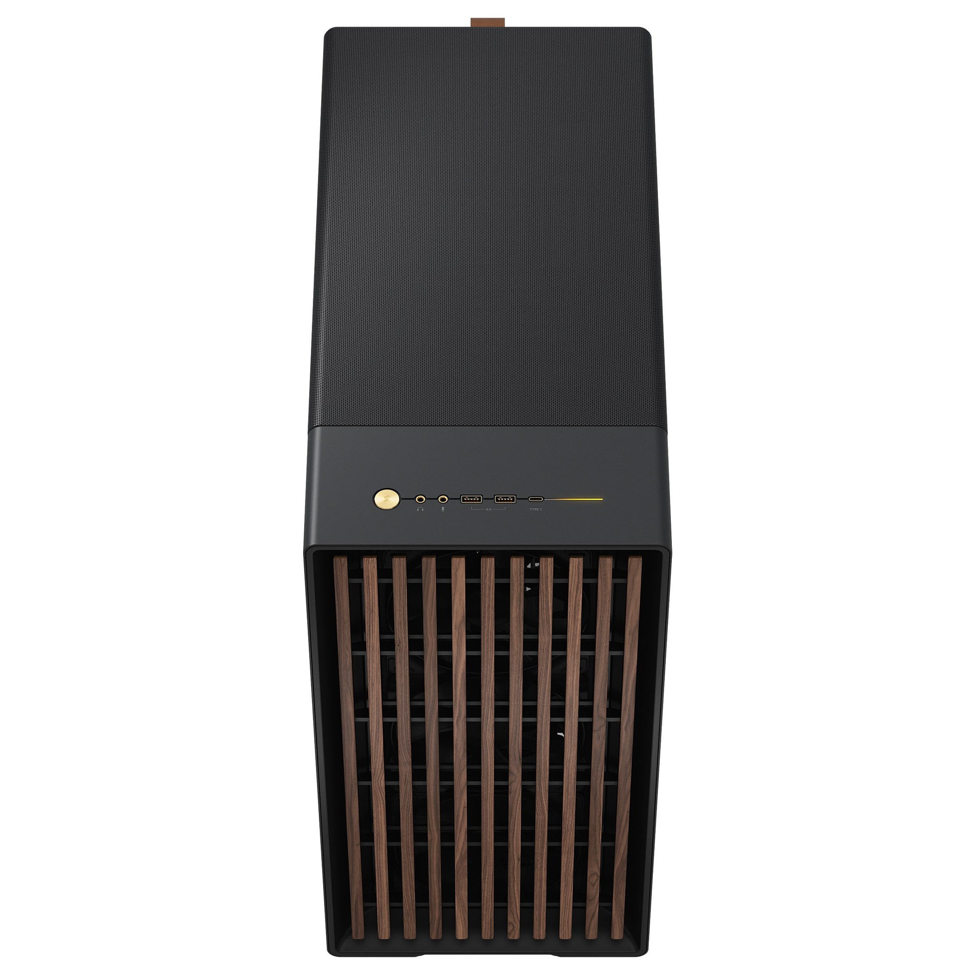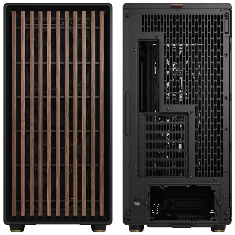 Eleganter Midi-Tower für Gaming-PCs, mit Front aus Walnussholz, kompatibel mit E-ATX Mainboards, Seitenteil aus Mesh-Fläche, bis zu 7x 120-mm-Lüfter oder 8x 140-mm-Lüfter, bis zu 2x 3,5-Zoll oder 4x 2,5-Zoll-Laufwerke, I/O-Panel mit 1x USB 3.1 Typ C und 2x USB 3.0 Typ A