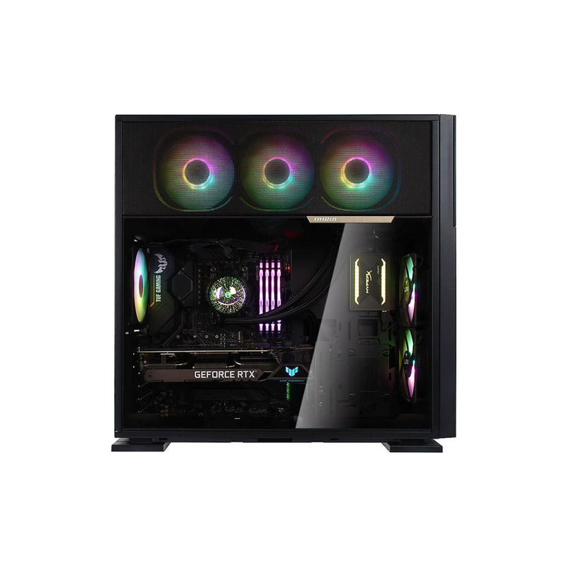 Für flüssiges Gaming in WQHD und 4K sorgt die ASUS TUF GeForce RTX 5070 Ti OC Edition mit 16 GB, die auch in anspruchsvollen Raytracing-Szenarien glänzt. Das System bleibt dank der Corsair iCUE H150i ELITE LCD XT AiO-Wasserkühlung und dem durchdacht belüfteten In Win N515 Gehäuse stets kühl und leise. RGB-Elemente sorgen dabei für ein visuelles Highlight, ohne aufdringlich zu wirken.